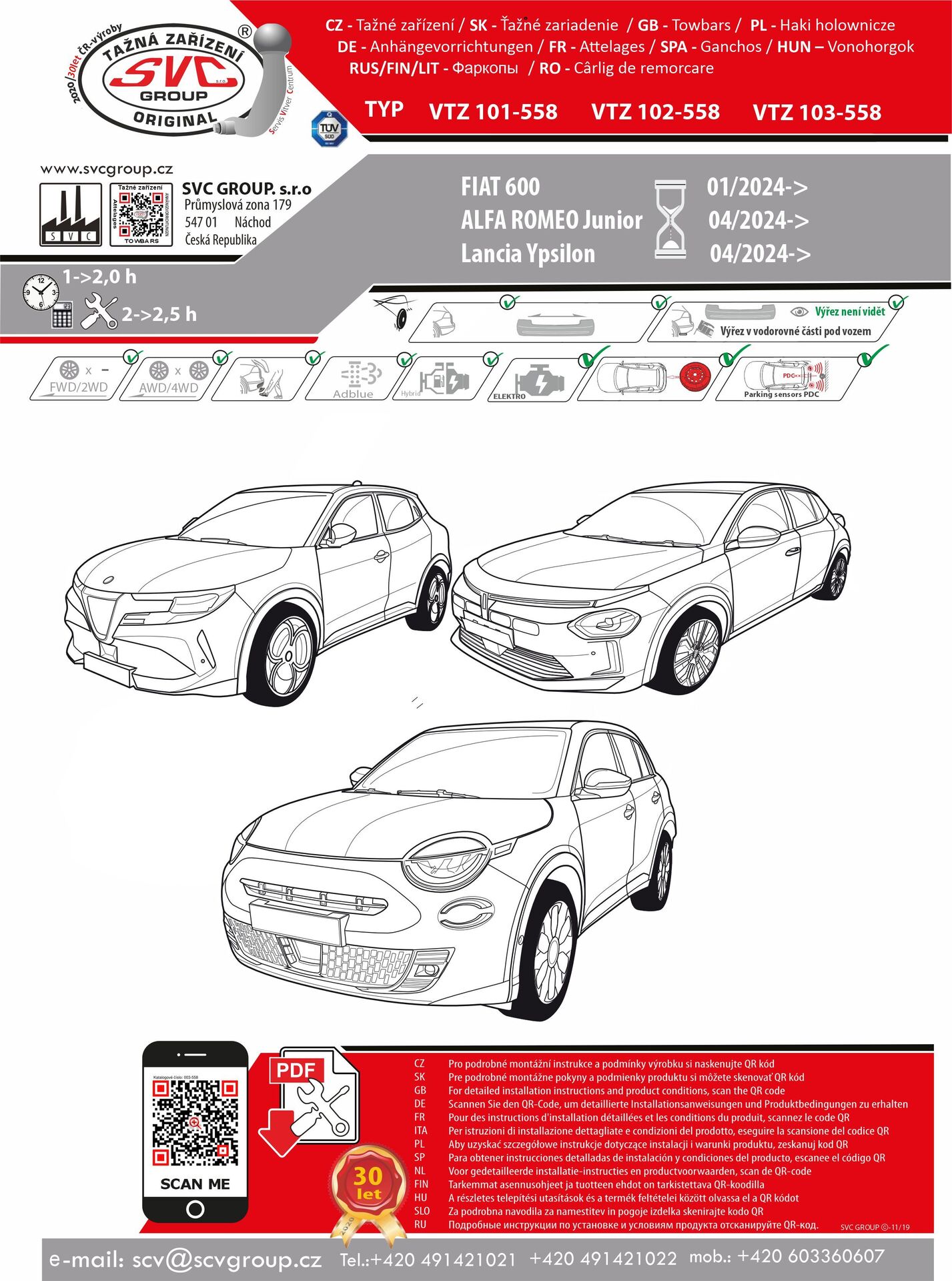 Tažný zařízení pro všechny výbavy a specifikace vozu včetně Lancia Ypsilon elektro + Hybrid. Prémiový zesílený výrobek vhodný i pro nosiče kol. Po demontáži kulového čepu a zaklopení auto zásuvky není na voze vidět že má tažné zařízení. Doporučeno pro od nosiče kol až po karavany. Originální výrobek SVC Group . Český výrobce s více jak 40 letou tradicí, garantující 100% servis na dodávané výrobky - vše máme skladem a co nemáme to si vyrobíme ..