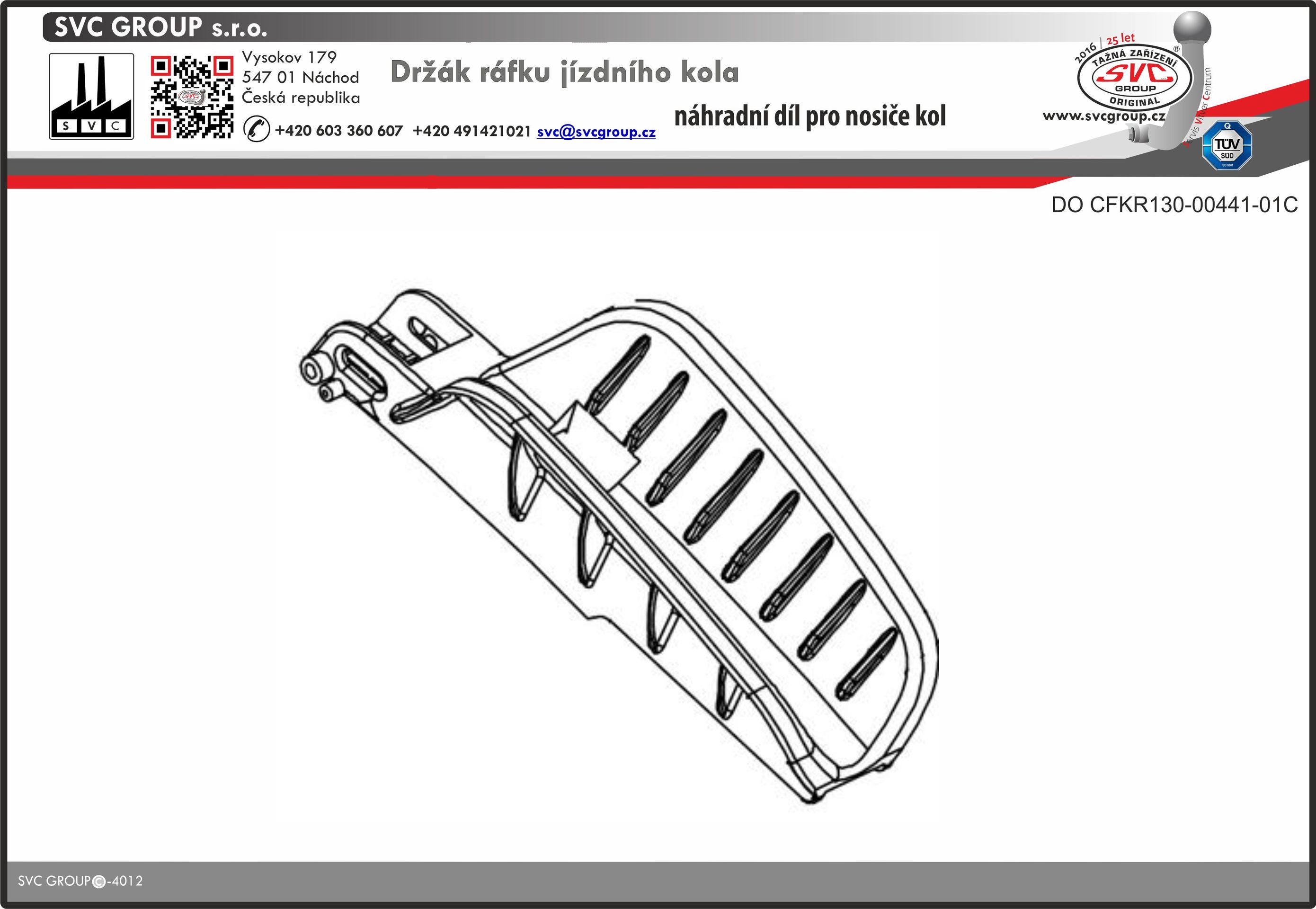 Plastový uchycení ráfku jízdního kola k nosiči kol na tažné zařízení.