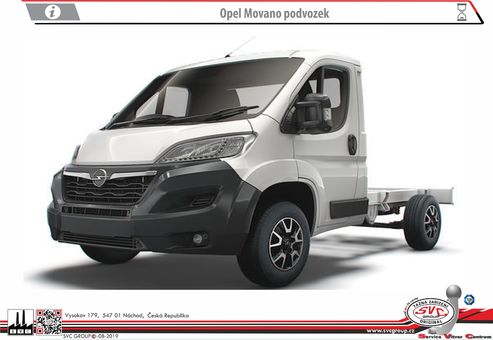 Opel Movano vychází z podvozku Fiat Ducato, Peugeot Boxer a Citroen Jumpy - podvozek vozu pro nástavby používá se jak krátká kabina tak prodloužená pro 5 cestujících