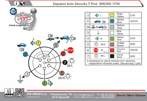 7 pinová auto zástrčka - výrobek je ověřený SVC pro montáž na přívěsné vozíky a nosiče kol, a další adaptéry.
