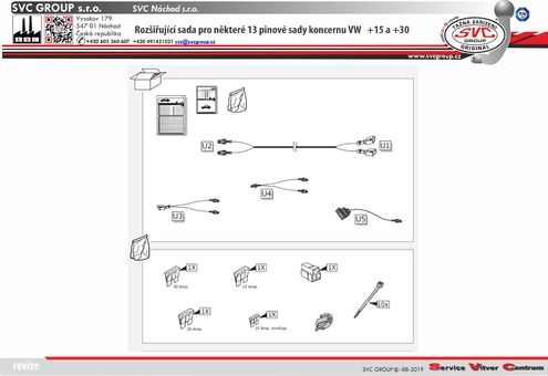 Sada pro doplnění 13 pinových auto zásuvek tažného zařízení o +15 a stálý proud +30 pro některá vozidla koncernu VW - dle návodu