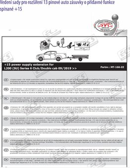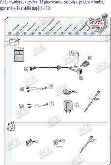 | Určeno pro auto přípojky 13 pinů ECS | Sada pro Caravan +15 a +30 / pin v zásuvce 9 a 10 |
