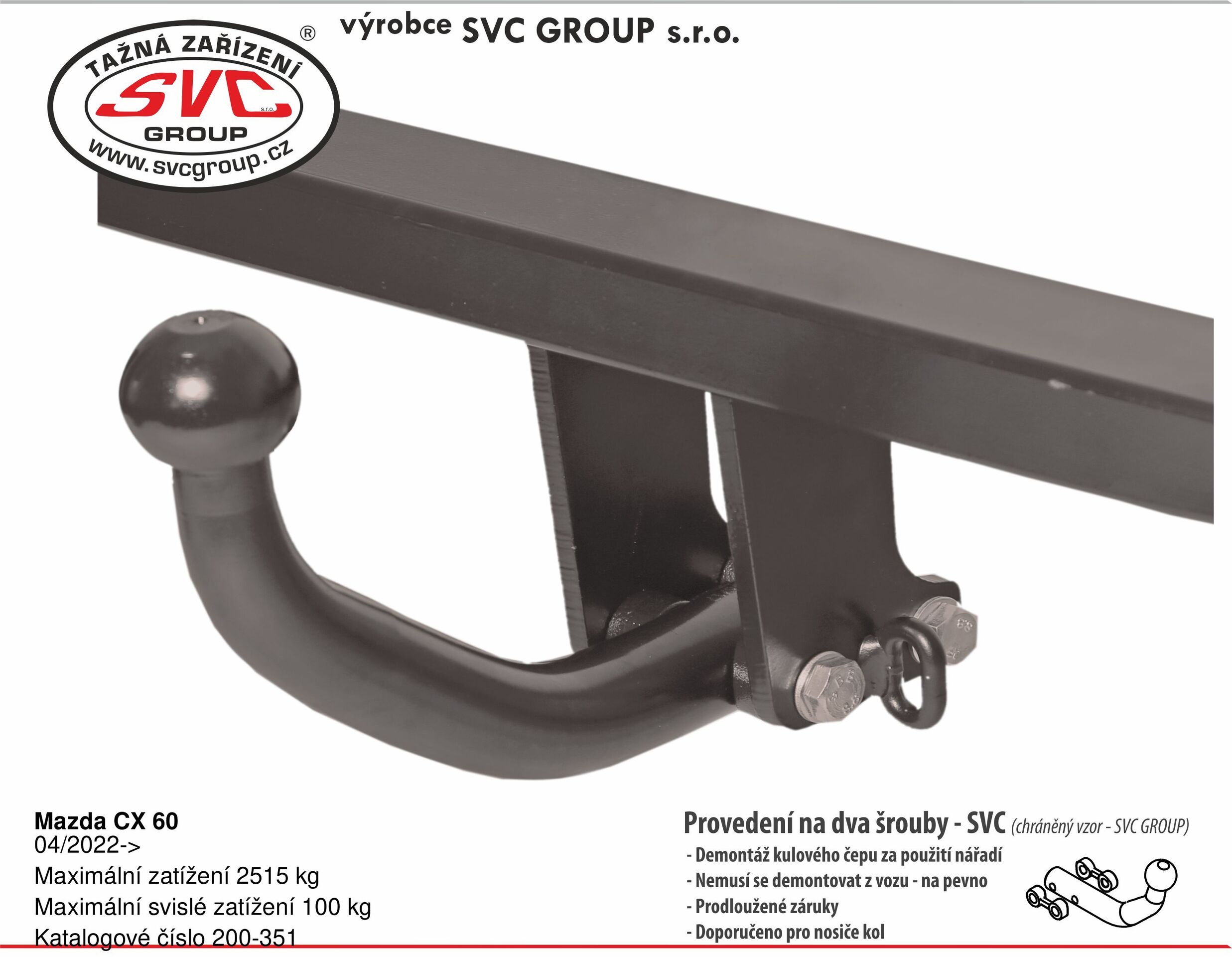 Dvou šroubové provedení SVC, nejpoužívanější a cenově nejdostupnější upevnění kulového čepu k zařízení, tak zvané upevnění kulového čepu na dva šrouby také nazývané napevno. Povrchová úprava je provedena metodou KTL v matném černém odstínu, které s četnými spodními hranami nárazníku nebudou rušit estetiku vašeho vozu po montáži tažného zařízení. Kulový čep se na základě nařízení EU nemusí demontovat z vozu, můžete jej mít celoročně namontovaný na voze, pokud nezakrývá registrační značku nebo činnou plochu osvětlení vozu, bez připojeného vozíku. Systém je průmyslově chráněný vzor a je záměnný z bajonetovým systémem SVMAT-2. Na základě norem ČSN je pohlíženo na šroubové provedení jako na rozebíratelný spoj za použití nářadí.