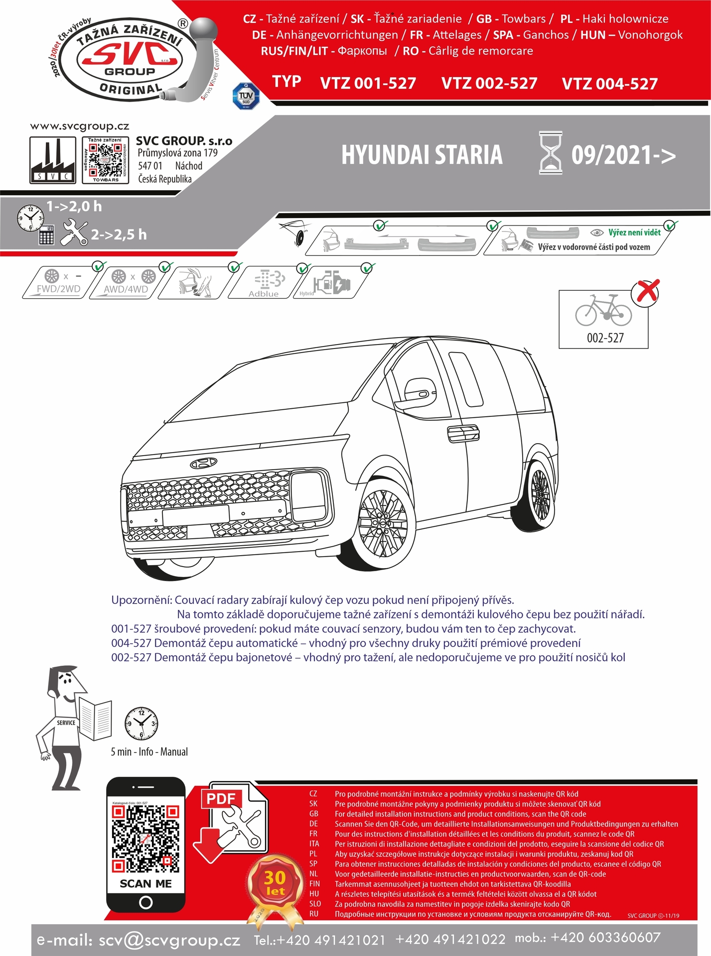 K tažnému zařízení je dodáván zdarma montážního návod, typový list pro zapsání do technického průkazu a na webu výrobce jsou rozšířené informace pro podporu montáže a použití výrobku.