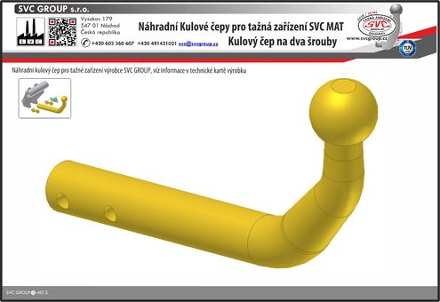 Dvou šroubové provedení kulového čepu - sada pro výměnu za poškozený bajonetový systém SVMAT 2 . Při objednání do poznámky uveďte katalogové číslo pro správnou identifikaci a případně číslo kulového čepu. Pokud nechcete dál využívat bajonetový systém lze tento systém zaměnit za dvou šroubové provedení, které je levnější. Dodání systému je jen pro případnou opravu tažného zařízení a nedodává se pro případné výroby tažného zařízení svépomocí a podobně. Proto se nevydává k výrobku typový list.