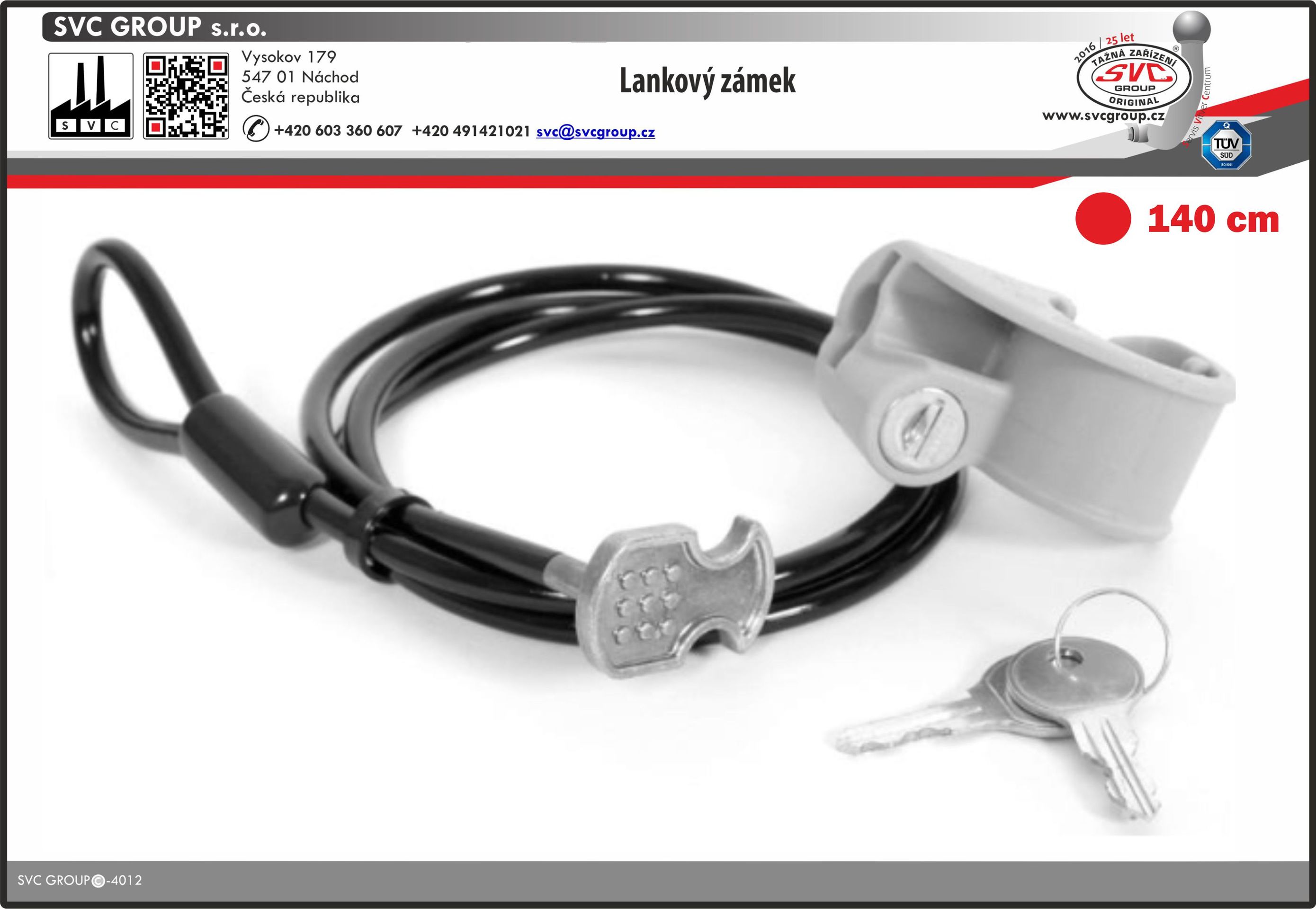 Lankový zámek pro uzamčení kol , zboží nákladu délka 140 cm v sadě 2 klíče a držák pro upevnění na nosič kol
