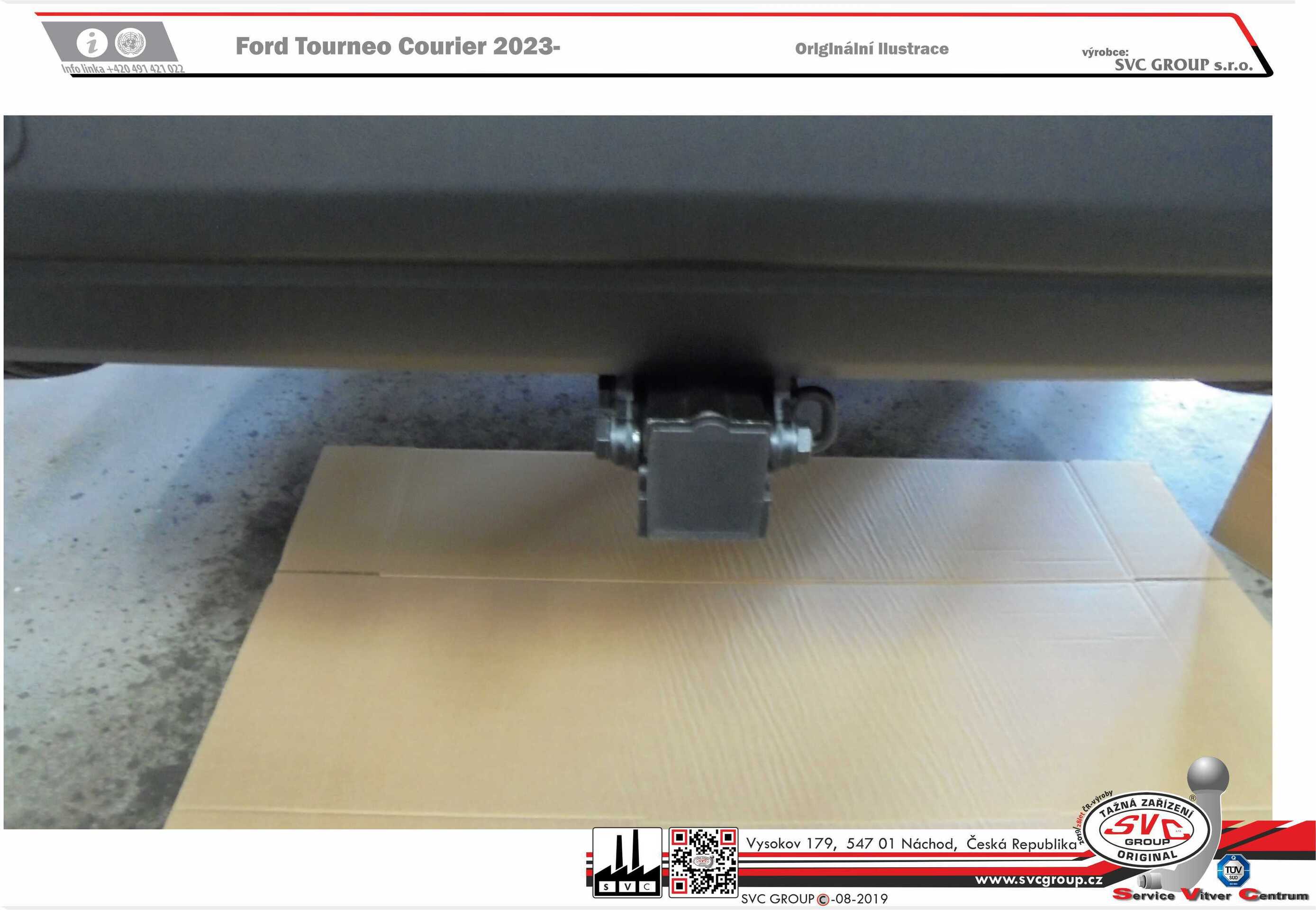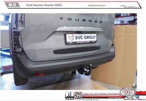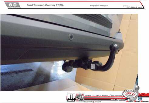 Ford Tourneo Courneo Courier 09/2023-> Také pro All-Elektric EcoBoost / Ecoblue a výbavy Active pokud to povoluje výrobce vozu. U typu AKTIVE se přesvědčte u svého dodavatele zda je na voze možné použít tažné zařízení.  Pokud výrobce umožňuje tažné zařízení tak tažné od SVC GROUP můžete na typ použít. ( vozido má černě lakovanou střechu a stříbrný spodní - středový díl zadního nárazníku. Váhy přívěsu pro pro jednotlivé motory: All-Elektric 750 kg/ EcoBoost  1000kg / Ecoblue 1100kg