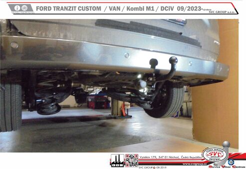 Doporučeno ve spojení s nosičem kol a těžkých přívěsů a karavanů.  Ford Tranzit Custom 09/2023->  Tažné zařízení pokud je povoleno výrobcem vozu můžete použít na všech modelech a typech vozu. Ford Transit Custon v provedení Van / Kombi M1/ DCiV a výbavách jako je Trend/ Trail/ Limited. Rozměry vozu od výšky M1/M2 či obytného vozu  Custom Nugget - Akromobil, tak délky L1/L2 ( 280-320). Motorizací: EcoBlue-Diesel,  PLUG IN HYBRID (nafta + elektrika PHEV), AL-ELEKTRIC E-Tranzit Custom Van (Elektrický BEV)