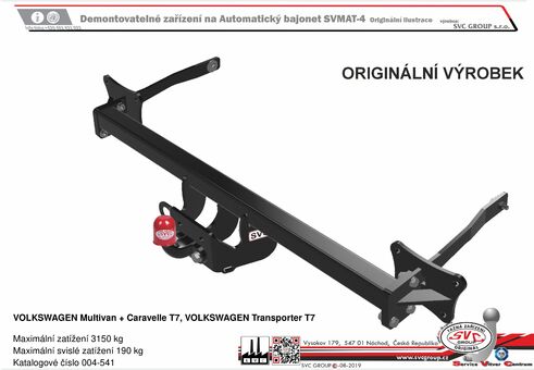 Tažné zařízení VW Tranzit nový model T7 ze zvýšenou pevností a možností nastavit výškově kulový čep podle zatížení vozu či přívěsu. Demontovatelné na dva šrouby. Tažné zařízení VW Transporter nový model T7 ze zvýšenou pevností a možností nastavit výškově kulový čep podle zatížení vozu či přívěsu. Demontovatelné na dva šrouby. Doporučeno ve spojení s nosičem kol a těžkých přívěsů a karavanů. Tažné zařízení pokud je povoleno výrobcem vozu můžete použít na všech modelech a typech vozu. VW Transporter T7 a to jak pro pohon předních kol tak 4x4 a verzí Caravan / California / Multivan a podobně vše co stojí na stejné podvozkové platformě . provedení Van / Kombi M1/ DCiV a výbavách jako je Rozměry vozu od výšky M1/M2 či obytného vozu  tak délky L1/L2 ( 280-320). Motorizací: EcoBlue-Diesel,  PLUG IN HYBRID (nafta + elektrika PHEV), AL-ELEKTRIC E-Tranzit Custom Van (Elektrický BEV)  Multivan Caravelle a další Výrobce a garantovaný servis - 100% výroba a servis SVC GROUP Český výrobce více jak 30 letou tradicí
