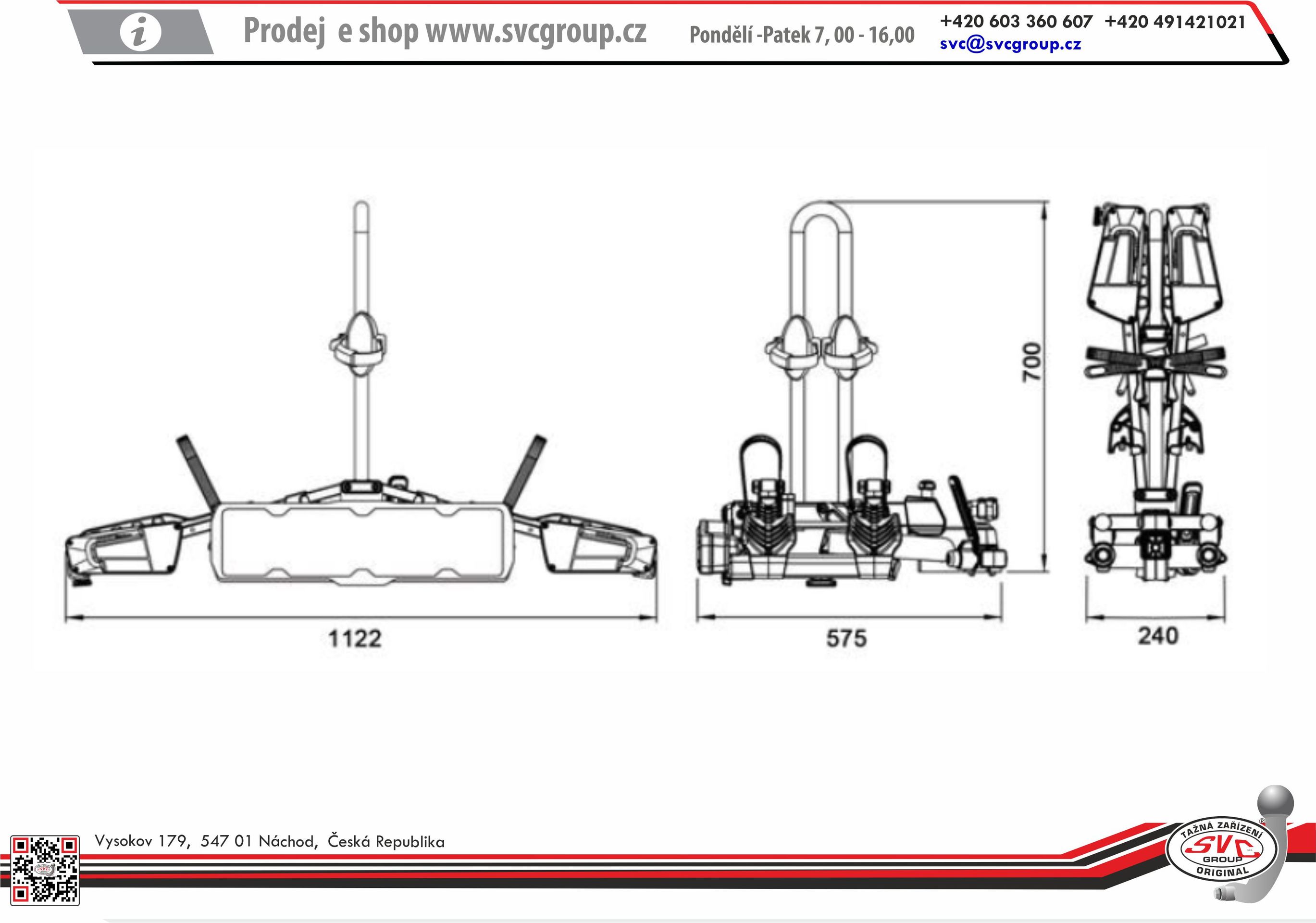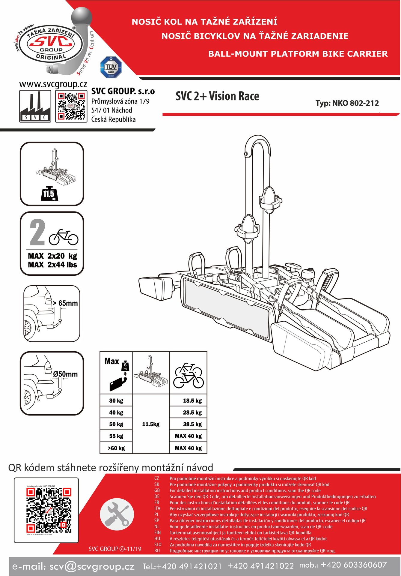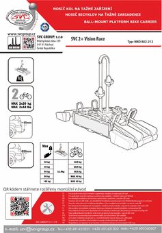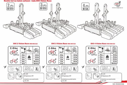 Nosič kol na tažné zařízení SVC 2 Race Vision - Pro 2 Elektro/Kola - informace