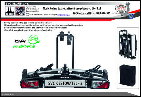 Nosič kol na tažné zařízení SVC 2 VIP Race Vision - Pro 2 Elektro/Kola - informace