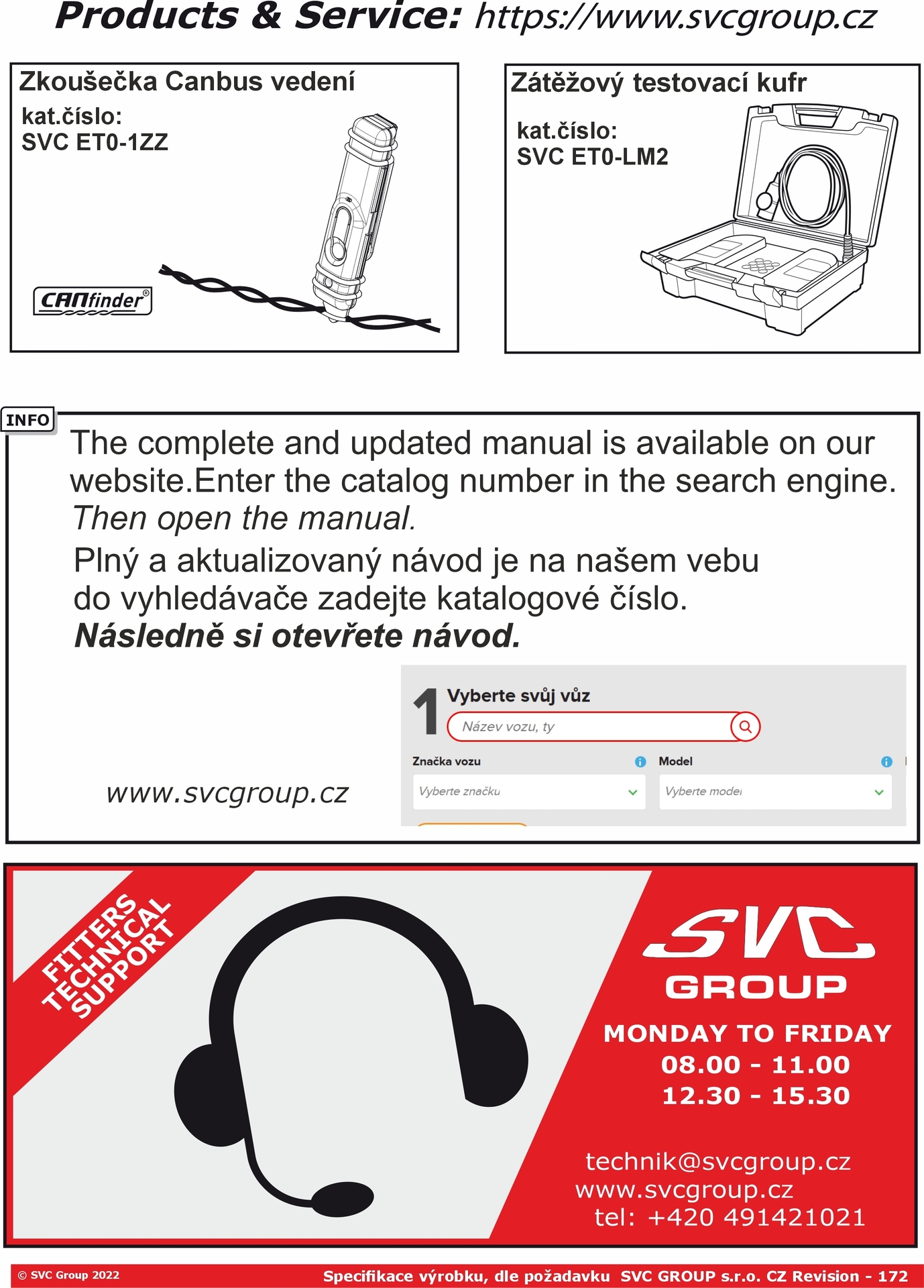 Technická podpora: technik@svcgroup.cz tel +420 491 420 267 Pondělí až Pátek od 7.oo – 11,3o 12,oo – 15.45 hod