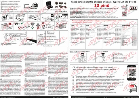 Pro montáž jsou zde k dispozici ilustrované montážní návody, případné diagnostické kódy, které se 24 hodin Online na webu aktualizují včetně návodu. Pro Diagnostickou aktivaci používejte vždy aktuální verzi softvéru ve vašich diagnostikách. Od roku 2017 používáme na dodaných návodech QR kódy, po jejich naskenování se Vám otevře návod ve Vašem smartfonu, tabletu nebo PC.