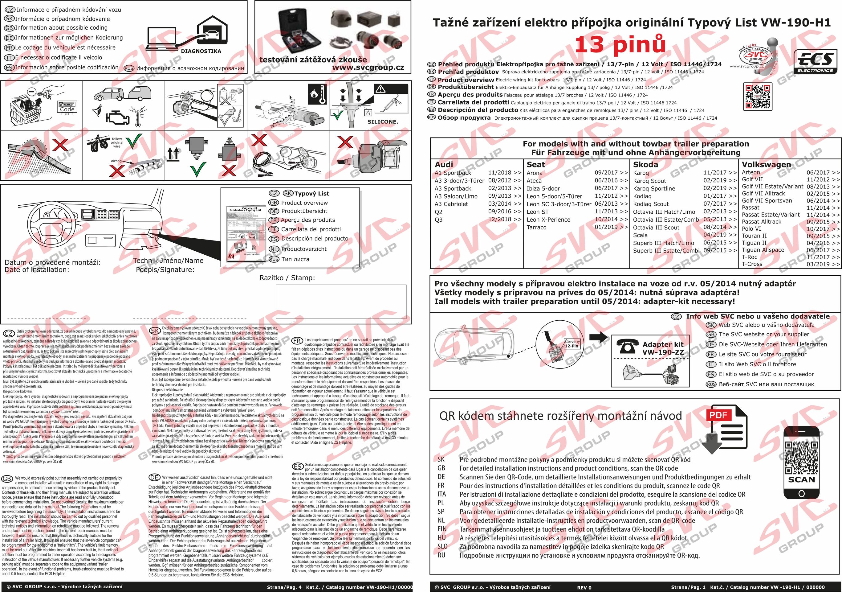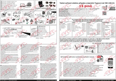 13/9* Pinová originální elektro přípojka pro tažné zařízení. Vhodné pro všechny typy a výbavy vozu NEMUSÍTE NIC ROZLIŠOVAT - DIAGNOSTICKY SE aktivují doplňkové funkce. VW-190-H9 Expert určené jak pro nosiče kol, tak i pro nadstandartní funkce karavanu +30, není potřeba dokupovat žádnou rozšiřující sadu.