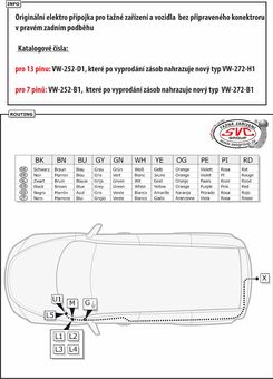 5- Tato elektro přípojka je určená pro běžné typy vozidel BEZ PŘRAVY tedy s běžnou bezpříplatkovou elektro instalací vozu pro tažné zařízení. Tato přípojka je nejčastěji používaná na všech vozidlech. Informaci o výbavě nebo přípravě vozu by vám měl sdělit dobý dodavatel, prodejce vozu. Případné podklady pro tyto informace naleznete na webu SVC GROUP ve fotogalerii nebo návodech.