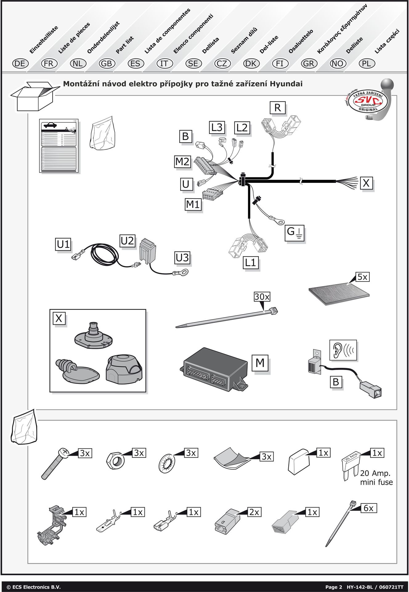 Instalace obsahuje originální konektory a piny pro spojení v místech požadovaných výrobcem vozu, set obsahuje všechny montážní prvky včetně podrobných montážních návodů a pokynů jednoduchou autorizovanou montáž na vozidlo.