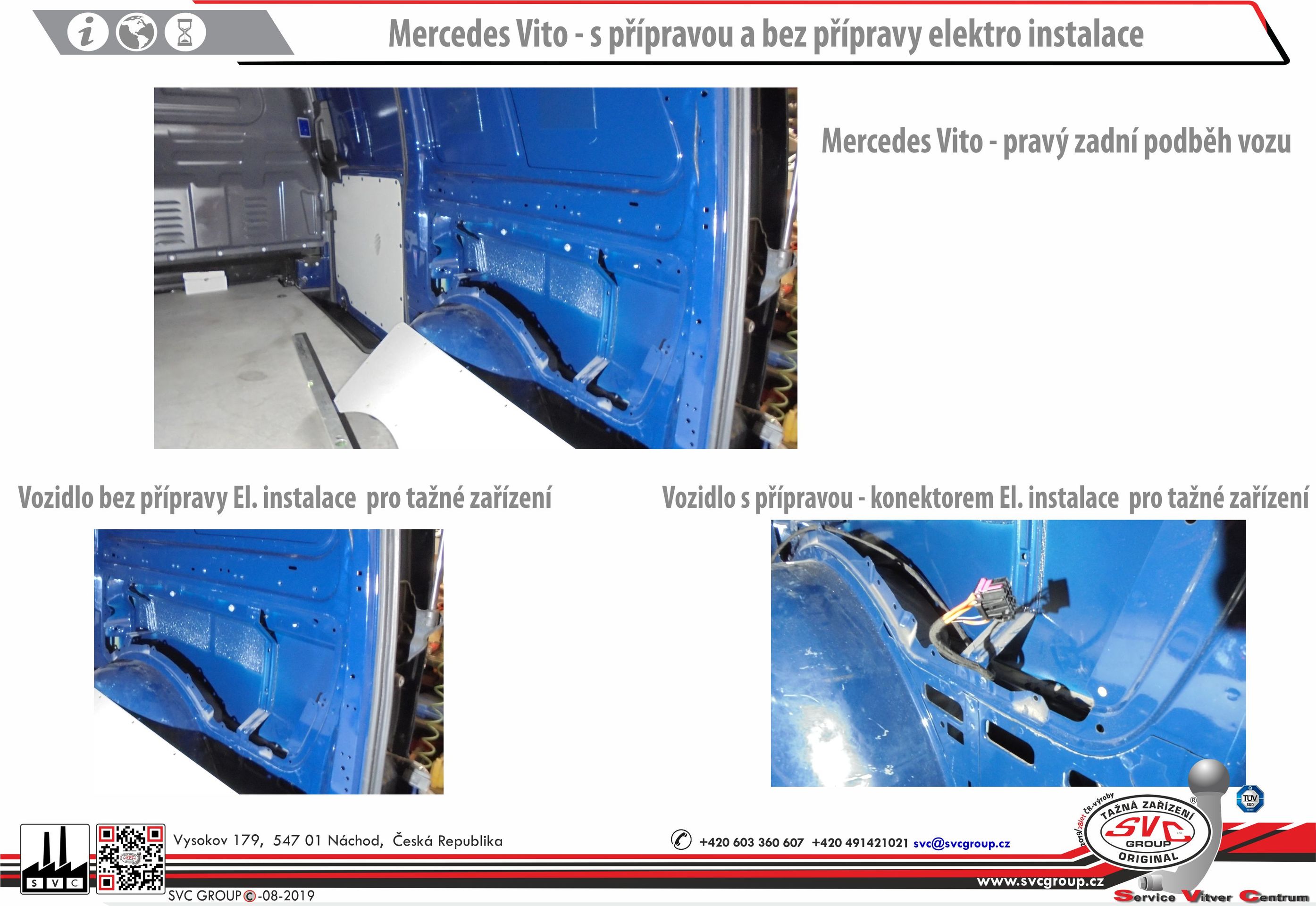 5- Elektro přípojka je určená pro typy a výbavy vozidel, s příplatkovou přípravou elektro instalací vozu pro elektro přípojku tažného zařízení. Při této konfiguraci vozu je převážně v zadní čísti vyveden konektor elektro instalace od výrobce vozu pro konektor elektro přípojky tažného zařízení. Výhody této přípojky tažného zařízení jsou, nižší pořizovací cena a rychlejší montáž na vozidlo. Informaci o výbavě nebo přípravě vozu by vám měl sdělit dobý dodavatel, prodejce vozu. Případné podklady pro tyto informace naleznete na webu SVC GROUP ve fotogalerii nebo návodech.