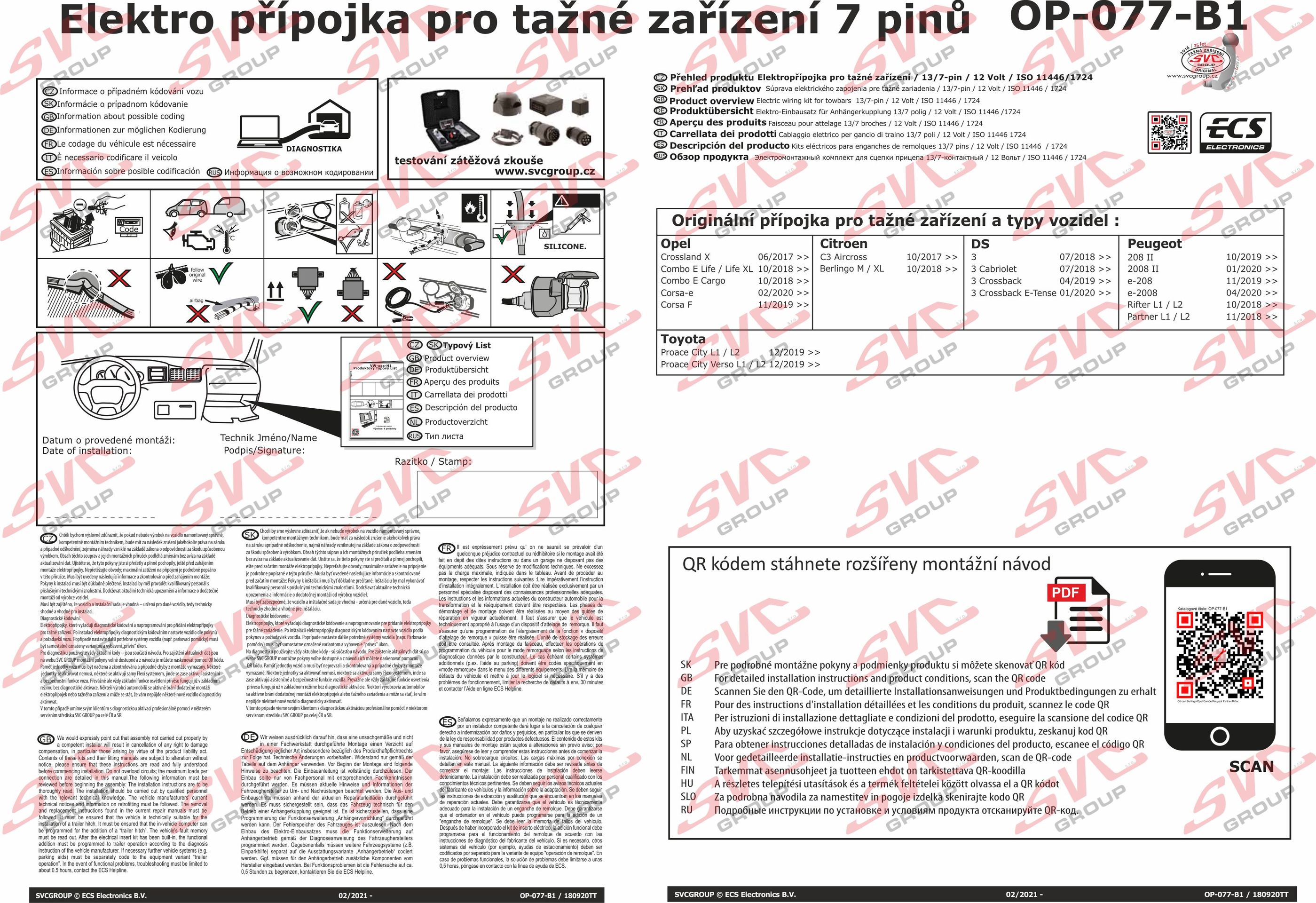 Originální typová 7 pinová elektropřípojka / Přípojka bez přípravy elektroinstalace pro tažné na voze / Výrobek neomezuje záruku po montáži na vaše vozidlo. / Parametry výrobku viz níže. Vhodné také pro vozidla revize 04/2021 : Opel Crossland X, Combo E Life / Life XL , Combo E Cargo, Corsa-e, Corsa F, Peugeot 208 II, 2008 II, e-208, e-2008, Rifter L1 / L2, Partner L1 / L2. Proace City L1 / L2 Toyota Proace City Verso L1 / L2 a DS 3 Crossback E-Tense