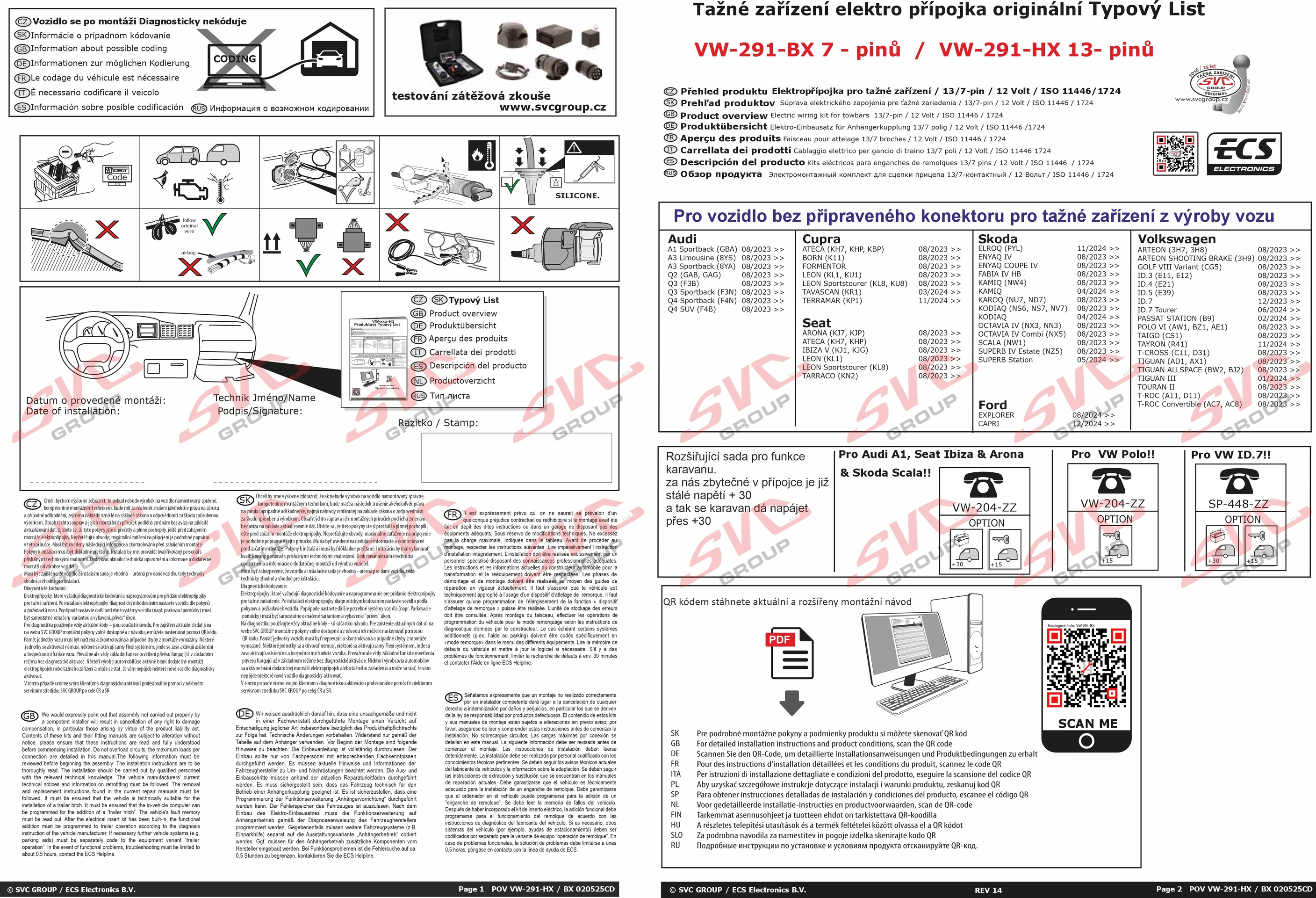 7 Pinová originální elektro přípojka pro tažné zařízení. Vhodné pro všechny typy a výbavy vozu nemusíte nic rozlišovat. Pro vozidla jak s přípravou tak bez přípravy vozu pro elektroinstalace vozu pro elektro instalaci tažného zařízení. DIAGNOSTICKY SE NEKODUJE ( odpadají problémy s kódováním vozidel a také s nesmyslem co si vymyslel koncern VW a to uzavření řídících jednotek vozu. Auto zásuvka je již namontovaná na vodičích pro rychlejší montáž. SVC GROUP Garantuje záruku na vozidlo po montáži, kvalitu výroby a dodávaného zboží řadou norem ISO ČSN EN 9001:2016, homologací pro automobilový průmysl a zaručení všech záruk na vozidlo po montáži.