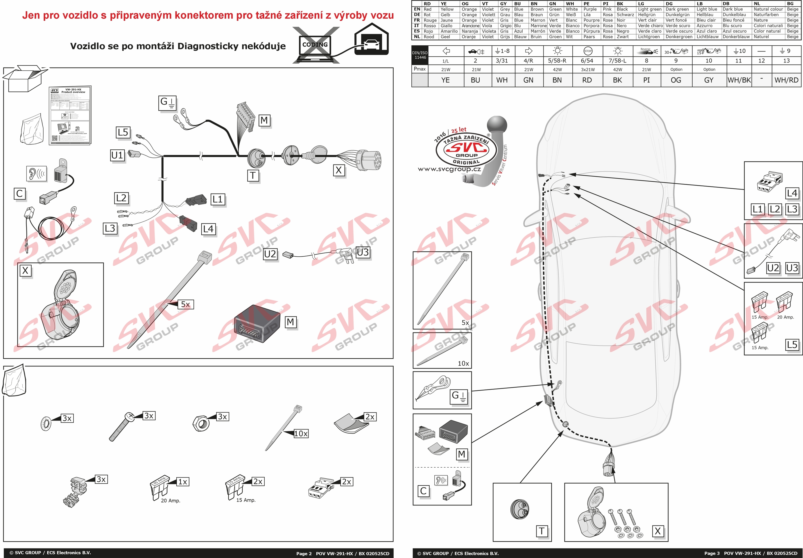 6- Tato elektro přípojka se po montáží na vozidlo Diagnosticky neaktivuje, všechny funkce vozu a přívěsného vozíku jsou plně funkční bez kódování. Zjednodušená montáž bez diagnostického kódování