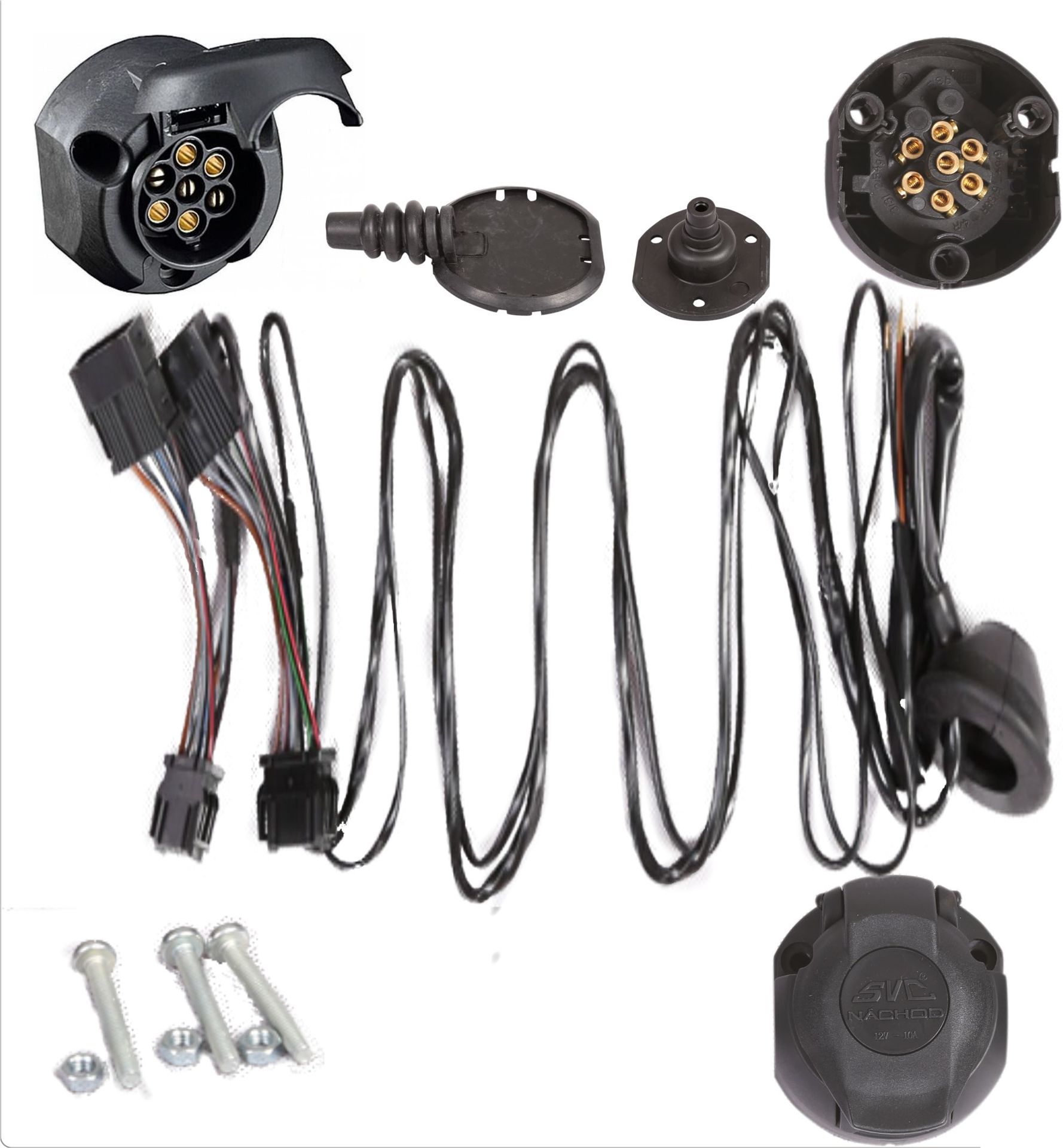 Auto zásuvka pro tažné zařízení: složení odolný plast, gumové těsnění, propojovací kolíčky, dutinkami na vodičích a potřebnými těsnícími gumičkami pro dlouhodobou životnost na vašem voze.