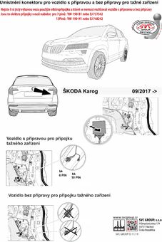 Petr - Našel jsem pouze 12pinový červeně připravený konektor zadní strana vozidla, ale dodaná elektro přípojka má sadu 2 kabelů a konektorů.