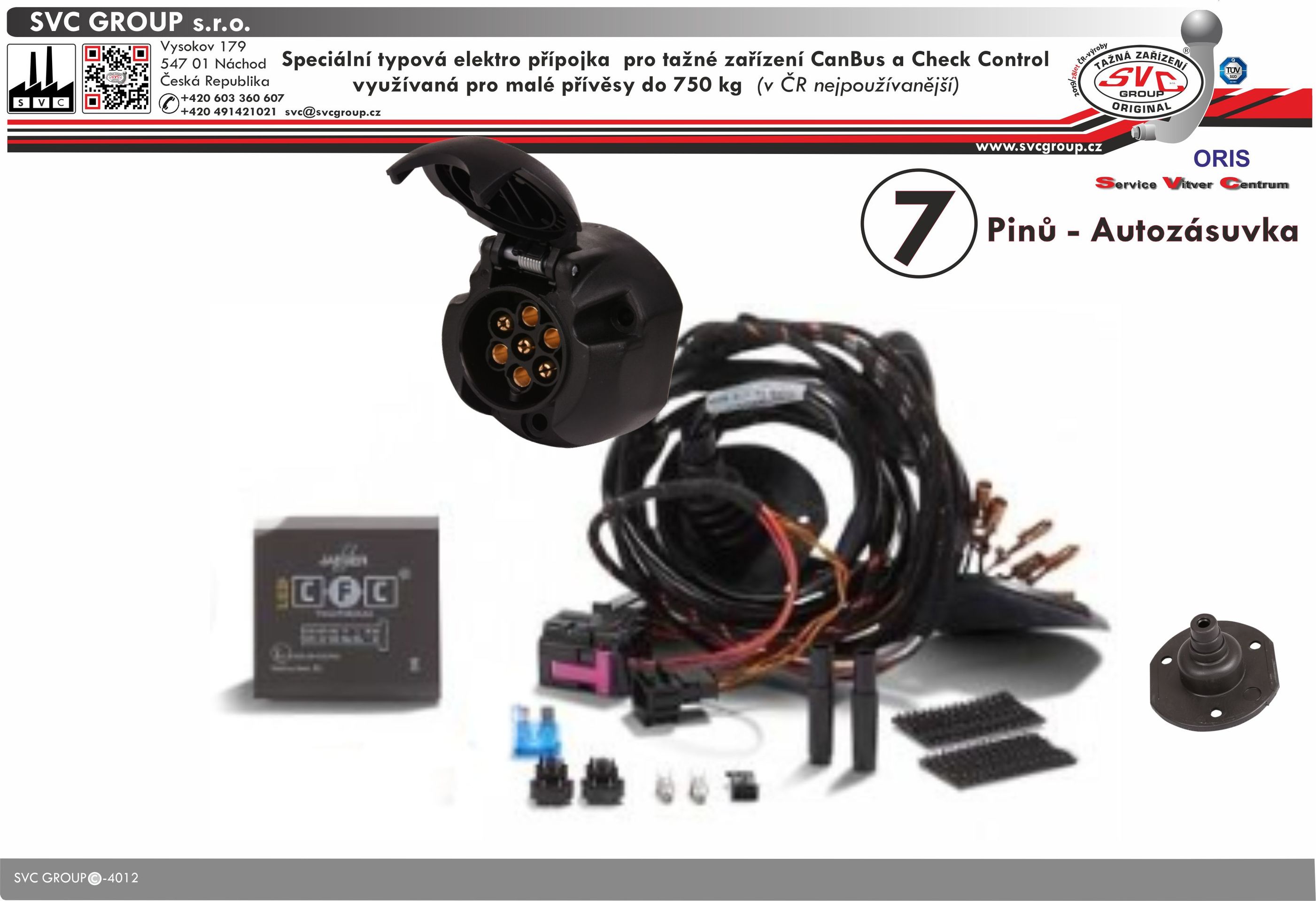 8- Elektro přípojka je určená pro vozidla, přívěsy nosiče kol s kontrolou poruchy žárovek, tak zvané z modulem Chek Control, C2, nebo vozidla s CanBus technologií. Jedná se převážně o moderní vozidla od roku výroby 2008 a výše.