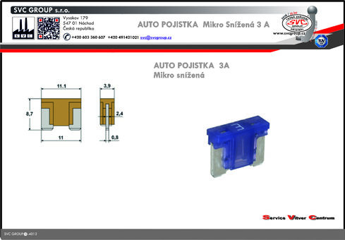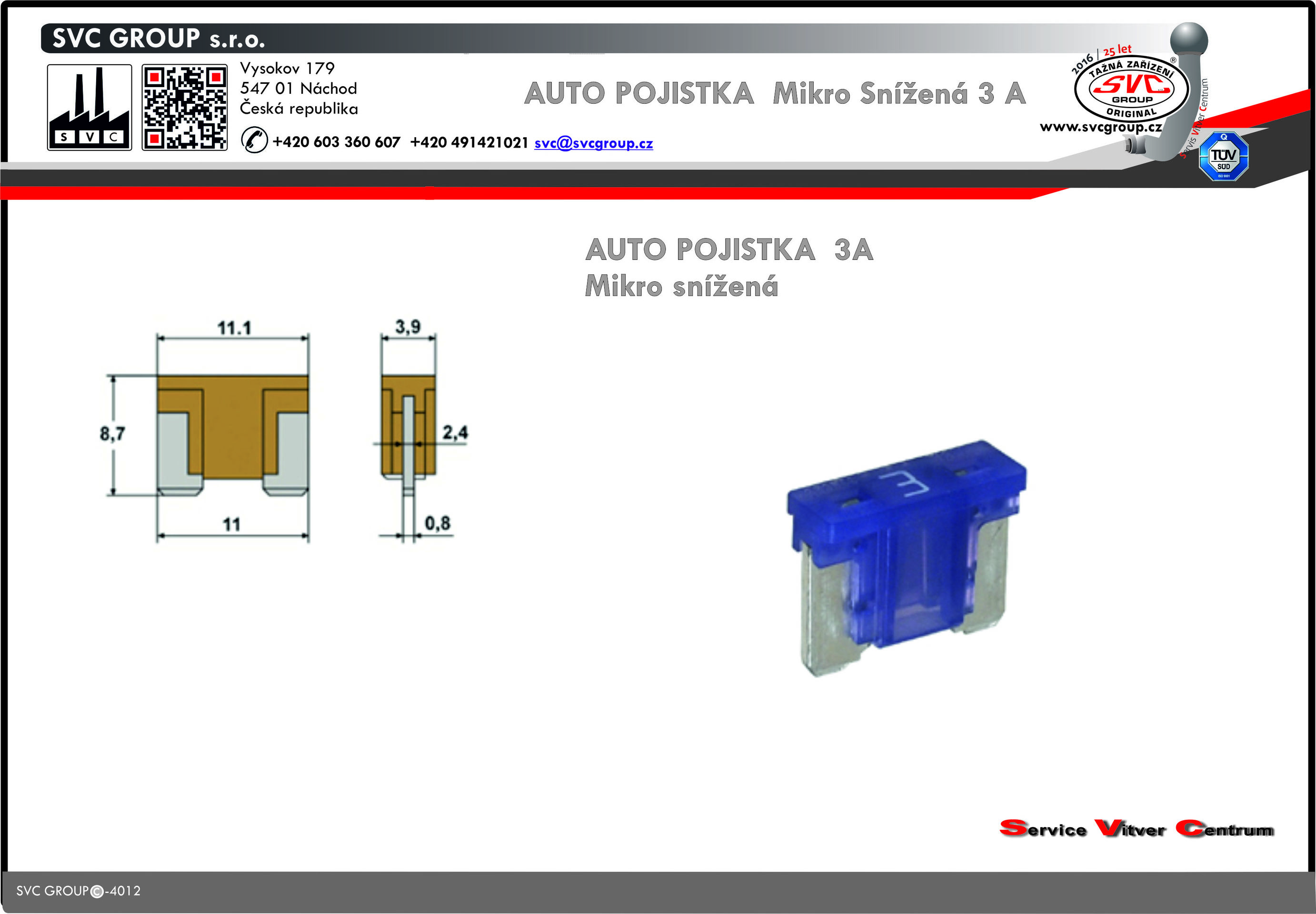 | Pojistka nožová Mikro | 3A /24V snížená - 1ks |