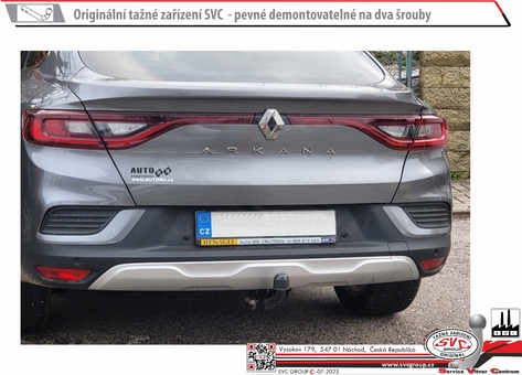 Tažný zařízení pro Renault Arkana 2020- Výrobek je určený i pro prosklené a dodávkové verze vozu /  včetně nožního otevírání zadních dveří Doporučujeme - pro použití ve spojení s nosiči kol včetně - E-Tech / RS Line - Hybrid a vozu s rezervou - nemáme zkušenost s Micro Hybrid