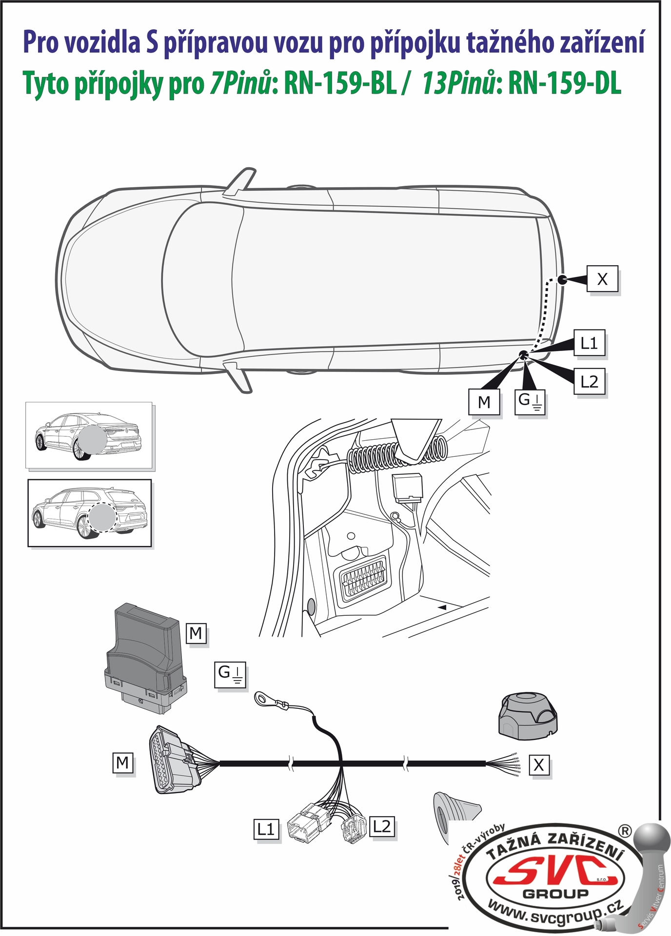 5- Elektro přípojka je určená pro typy a výbavy vozidel, s příplatkovou přípravou elektro instalací vozu pro elektro přípojku tažného zařízení. Při této konfiguraci vozu je převážně v zadní čísti vyveden konektor elektro instalace od výrobce vozu pro konektor elektro přípojky tažného zařízení. Výhody této přípojky tažného zařízení jsou, nižší pořizovací cena a rychlejší montáž na vozidlo. Informaci o výbavě nebo přípravě vozu by vám měl sdělit dobý dodavatel, prodejce vozu. Případné podklady pro tyto informace naleznete na webu SVC GROUP ve fotogalerii nebo návodech.