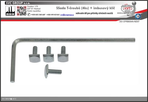 Kompletní sada - obsahuje příčné tyče 4ks T šroubů a imbusový klíč.
