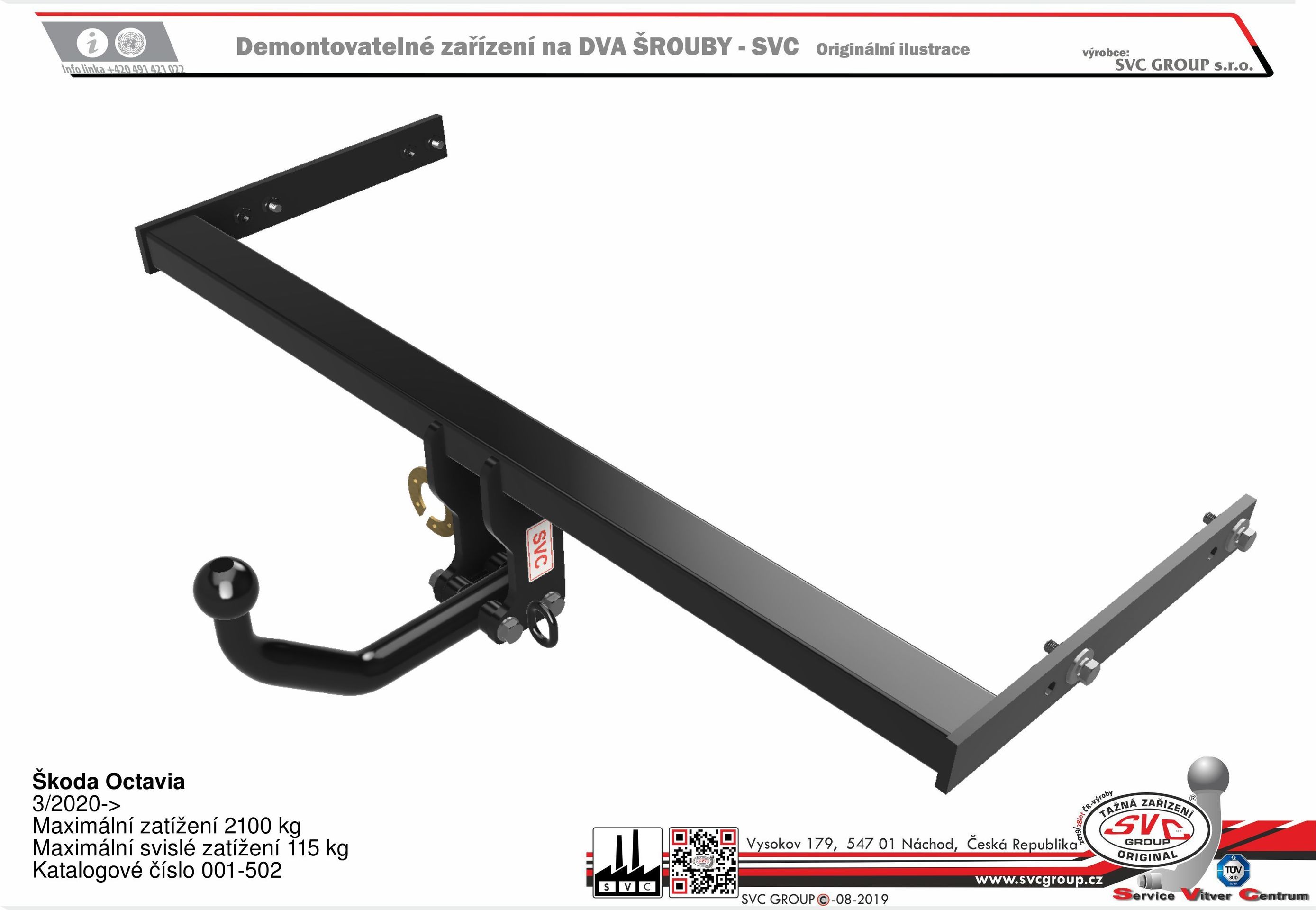 Tažné zařízení SVC Group pro typ vozu Škoda Octavia  od roku výroby 03//2020->  a následného faceliftu v roce 2024-> nové provedení přední části vozu