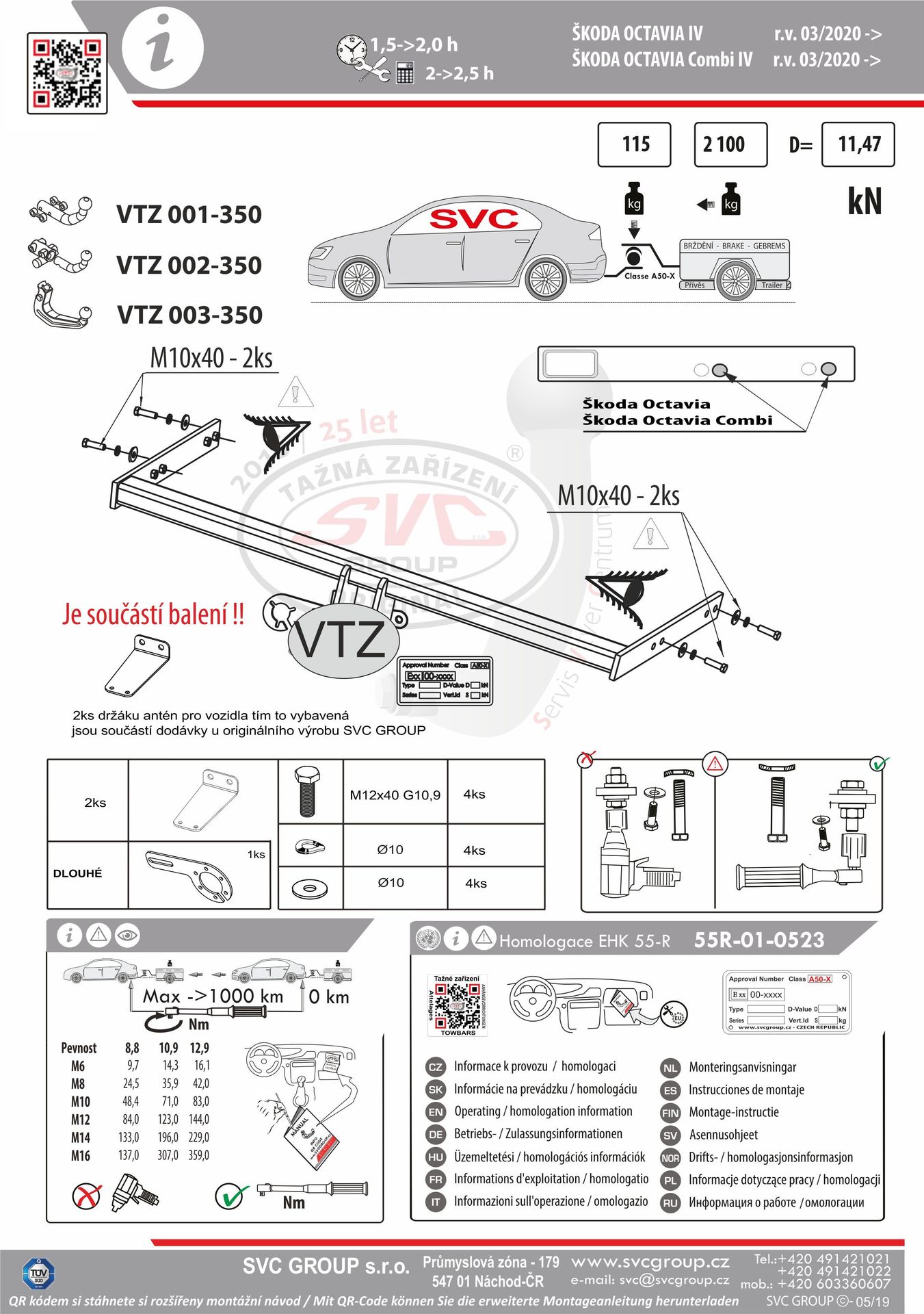 Prémiové Originální automaticky demontovatelné tažné zařízení SVC Škoda Octavia + Combi od roku výroby 2020 bez příplatkového spodního dílu nárazníku vozu, pro tažné zařízení. Tento nárazník nemá od spodu kapličku a otvor pro tažné zařízení. viz fotogalerie. V ceně tažného zařízení jsou i držáky zadních PDC antén pod nárazníkem, (u některých dodavatelů si je musíte objednávat solo) tedy pokud vozidlo využívá tuto technologii, nemusíte nikde nic doobjednávat prodražovat montáž a čas vozidla stráveného na dílně. Vhodné pro použití také pro 4x4, dále pak pro diesel s AdeBlue a provedení vozu iV . Pokud povoluje výrobce vozu tak i pro typy modelu vozidel s CNG povolení naleznete v technickém průkazu - pokud jsou v kolonce pro tažné zařízení uvedené hodnoty v kg povoluje výrobce použití tažného zařízení.