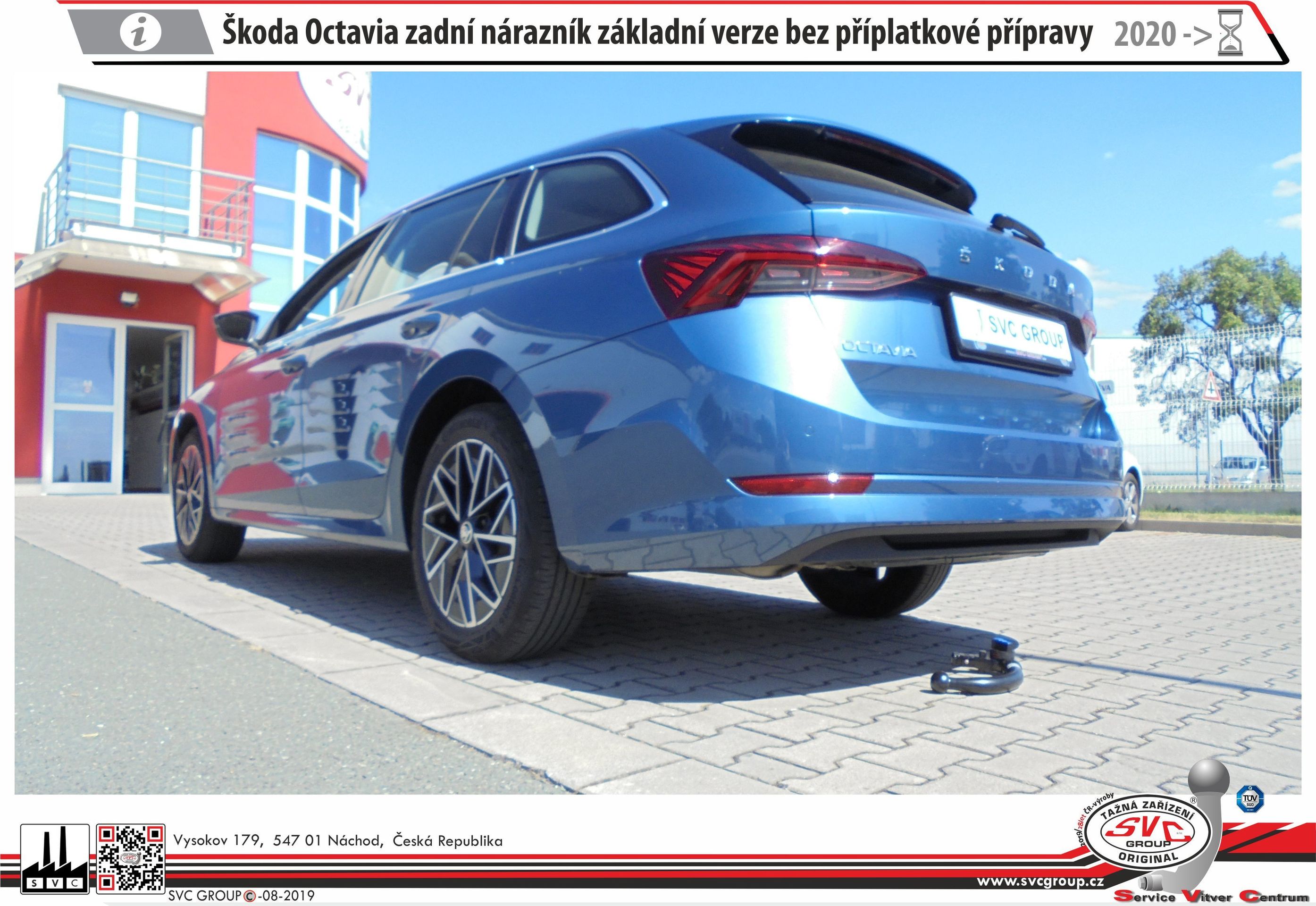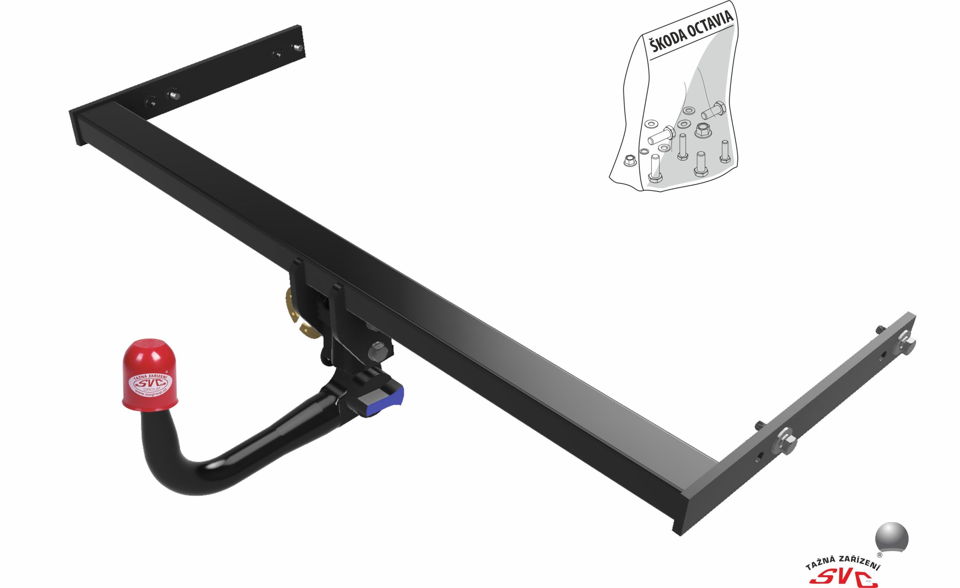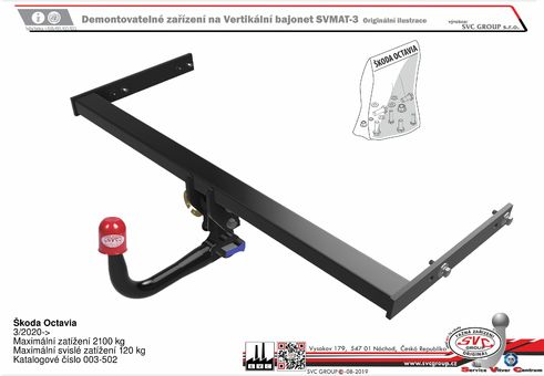 Prémiové automaticky vertikální demontovatelné tažné zařízení od SVC pro Škoda Octavia + Combi od roku výroby 2020, bez příplatkového spodního dílu nárazníku vozu, pro tažné zařízení.