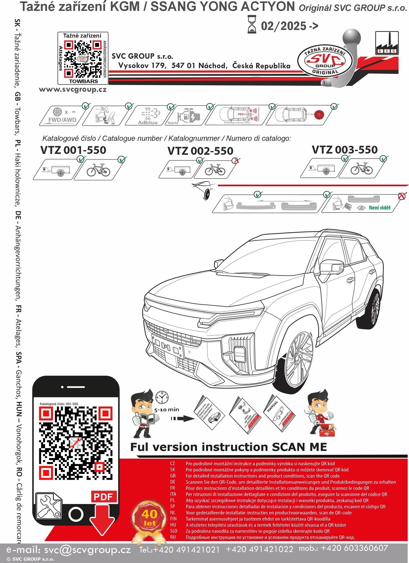 K tažné zařízení je dodáván zdarma montážního návod, typový list pro zapsání do technického průkazu a na webu výrobce jsou rozšířené montážní informace pro podporu montáže, která je jednoduchá a dle požadavku výrobce.