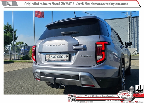 Prémiové tažné zařízení na vertikální automat KGM/Ssang Yong Torres a Torres e-Motion - elektro vozidlo.  Tažné lze použít na všech vozech a všech druzích výbavy. Nemusíte nic rozlišovat. Tedy lze použít na vozech jak s rezervou tak bez ní, pro nožní otevírání dveří...  a všechny motorizace včetně elektro auta. Tam kde není povolené tažné ... tedy u některých elektro aut. tažné zařízení, lze použít jako držák nosičů kol. Pro nosiče kol je tento typ tažného zařízení doporučený  Tento výrobek po demontáži kulového čepu a zaklopení auto zásuvky není na voze vidět že má tažné zařízení.  Výrobek schválený a doporučený dovozcem vozidel , garantuje záruku na vaše vozidlo.