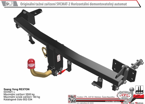 Tažné zařízení Ssang Yong Rexton vhodné pro vozidlo s AdBlue a rezervou, i pro 5 i 7 místné provedení vozu / Né pro SPORTS PICK UP