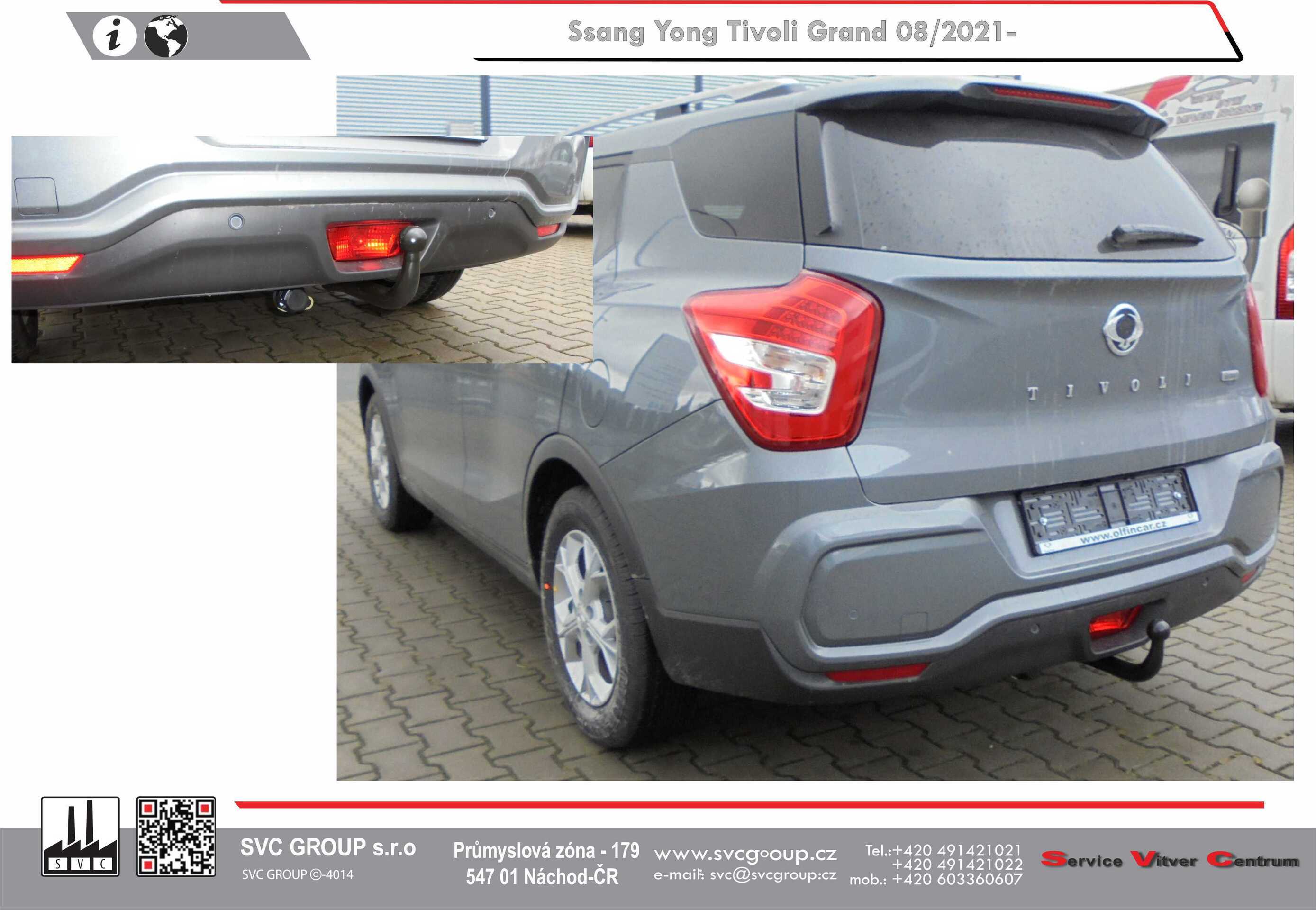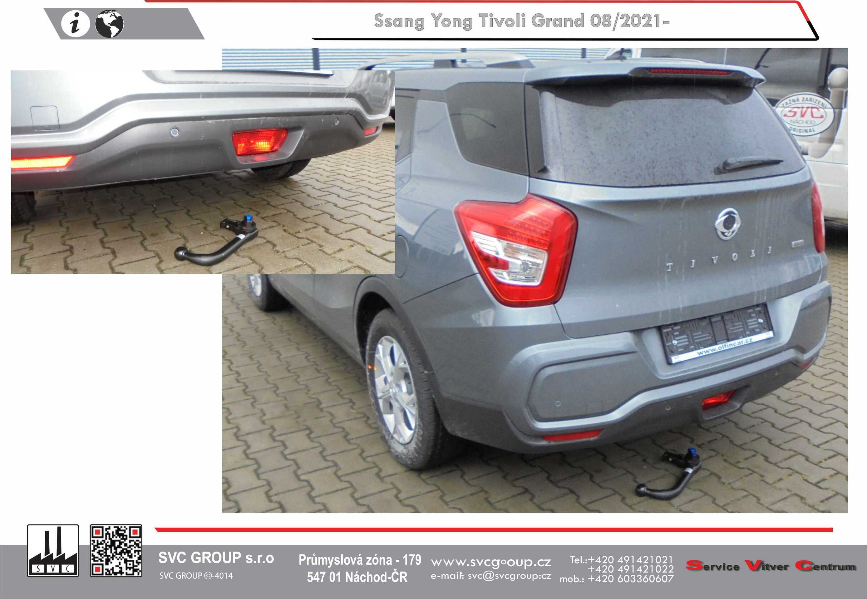 Tažné zařízení prémiový automat demontovatelné.  Ssang Yong Grand Tivoli vhodné pro vozidlo s Ad-Blue a rezervou. Také pro VXL 5 a 7 místné provedení vozu.  Po demontáži kulového čepu není na voze vidět že je vybavené tažným zařízením.