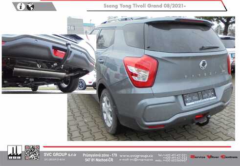 Tažné zařízení prémiový automat demontovatelné.  Ssang Yong Grand Tivoli vhodné pro vozidlo s Ad-Blue a rezervou. Také pro VXL 5 a 7 místné provedení vozu.  Po demontáži kulového čepu není na voze vidět že je vybavené tažným zařízením.  Kulový čep zakrývá mlhové světlo a měl by byt demontován pokud toto světlo využíváte v provozu.
