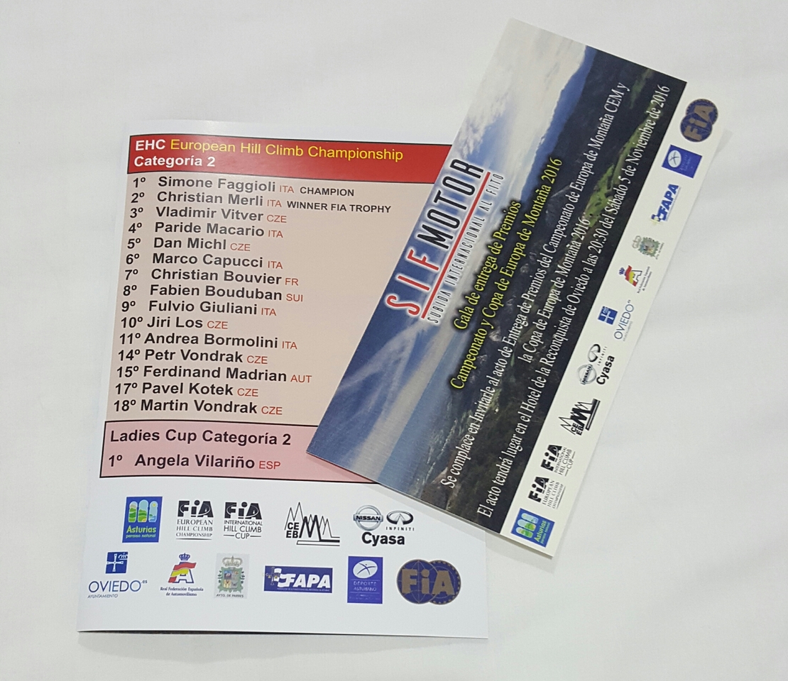 Vyhlášení ME FIA European Hill Climb Championship 2016- Španělsko