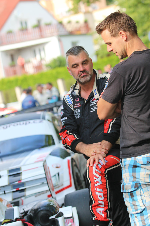 V nedělních závodech bylo vše už malinko napínavější. Auta oproti sobotním tréninkům zrychlovala, na trati bylo více bourajících závodníků, startovací procedury nebyly tak plynulé, a tak se obě závodní jízdy musely obejít o mezi svoz… A ne méně napínavé to bylo mezi Vladimírem Vitverem a Danem.
