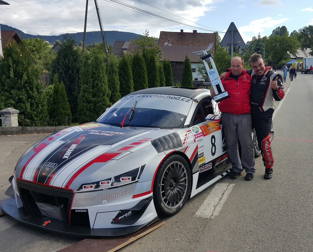Tak samozřejmě ano, je to pro mě veliká satisfakce za Dobšinou zejména, když jsem tady nepřímo od ČR konkurence z repre. slyšel fantasmagorický názor, že jsme Dobšinou schválně utopili, tímto jsem jim odpověděli jasnou řečí. Porazit kompletní evropskou elitu a ustanovit nový rekord trati je super pocit. Jsem rád, že mohu konečně tento rok sponzorům vracet důvěru, kterou do propagace svých výrobku prostřednictvím nás dali. Vím, že máme do konce sezony ještě 3 závody a stát se může ještě cokoli. Tento rok je v E2-SH největší konkurence co pamatuji, přesto se držíme převážnou část sezony na špici. Dál si myslím, že po těch všech získaných titulech z ME to je i jasná odpověď na naše vyřazení z reprezentace :-D :-D . Máme jako jediný soukromý tým v roce 2015, bez podpory AČR a to nemyslím finanční, dvě auta v první 10, to mluví samo za sebe. Mám obrovskou radost a hrdost na všechny co nám pomáhají a podporují nás.