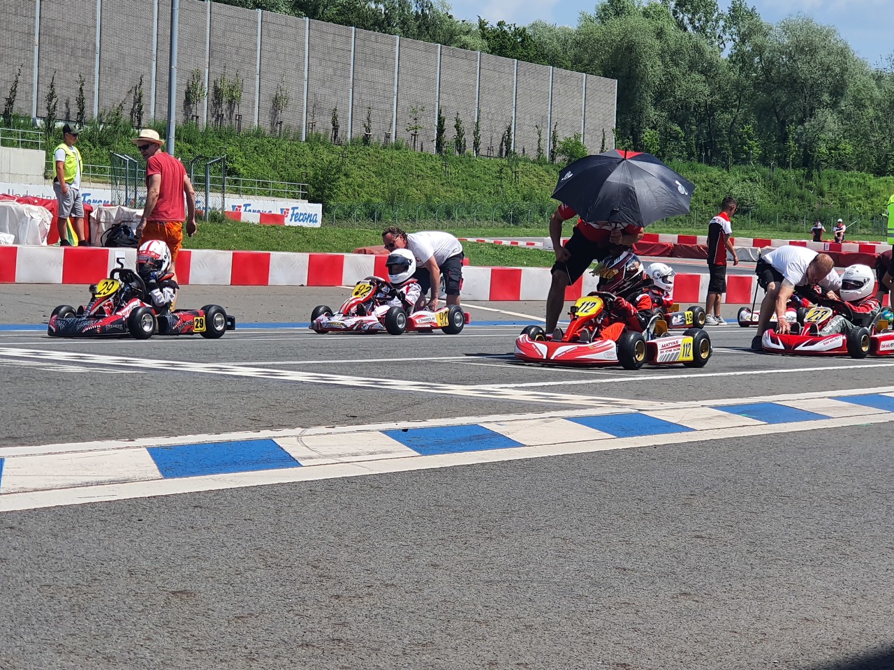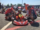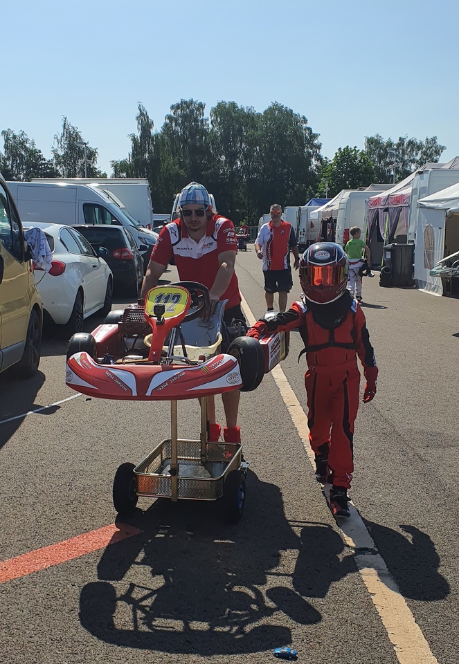Velká radost z výhry přinesla veliké nervy, Maty nikdy nenacvičoval pevný start na semafory ( 60ky mají letmý start ), když bude první, nemá jak opisovat od toho před sebou, a tak... I přes to, že jsme do toho šli bez jakékoliv dřívější zkoušky, tak musíme říci, že se s tím popral moc pěkně i s jednou opakovačkou a jedním ulitým startem, který se opakoval, ale ne kvůli němu, ale dík ne správně provedené startovní proceduře. Samotné závody probíhali takto, 1 a 2 jízda jak přes kopírák od 2-3 kola se plně začal projevovat problém, který jsme sledovali od soboty a to, že začal motor ztrácet razantně výkon a Matyas jezdil o 9 vteřin pomaleji než v tréninkách a kvalifikaci a na základě 2 jízd startoval do superfinále až ze 7 pozice, zvažovalo se, že ani nenastoupíme, ale získávání zkušeností dostalo přednos před případnou destrukcí motoru. Nyní se řeší co dál, zda má cenu kvůli 4 závodům pořídit motor na 50ku, či co a jak, protože odmítáme stát nad motorem 2 taktem na kterém vidíme, že je chudý, ale nesmíme na něj sáhnout a obohatit jej a vlastně vědět že od kvaldy je po závodním víkendu.