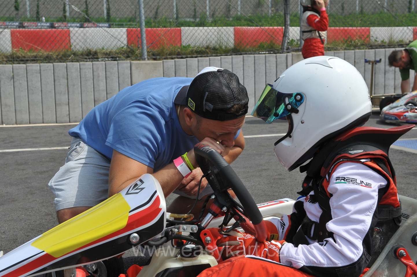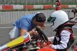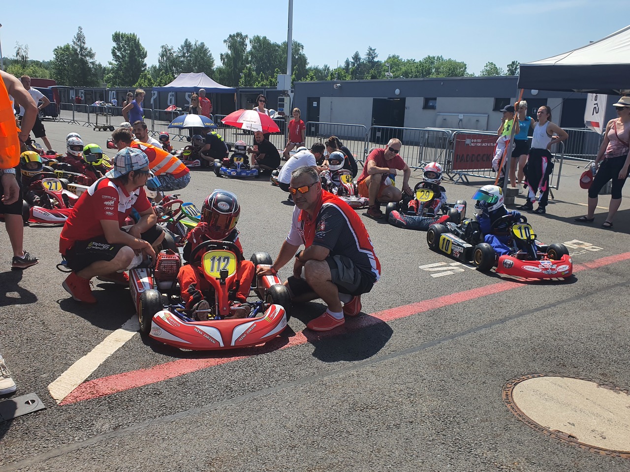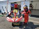 A tak konečně k 1 závodnímu víkendu, který se skládal z 2 volných tréninků, kvalifikace, 2 bodovaných jízd a Super finále. Naše tréninky začínali tedy mezi rovnocennými kolegy, kde poprvé Matyas mohl přenést do reality jaké to je, když se s někým honí, předjížděcí manévry, startovní proceduru. Tedy teorii přenesenou do reálu a jízdy s kolegy kolo na kolo. V sobotu jel Matyas volný trénink stejně jako trénink páteční s 2 nejlepším časem za týmovým kolegou Dominikem Jirákem, což nás uspokojovalo. Do kvalifikace, která měla určit pořadí na startovním roštu ( trochu byla obava, jek se s tím na poprvé popere ), dostal instrukce, jak má jet a čekalo se, jak se to podaří… Podařilo se! Dobře do ní odstartoval a když byl předjet v první zatáčce, tak to hned v další vrátil a udělal si do měřeného tréninku pro uklidnění dostatečný náskok a hned v prvním kole zajel čas, který ho hned při prvním závodě v životě katapultoval na 1 místo kvalifikace a na startovním roštu do měřených závodů.