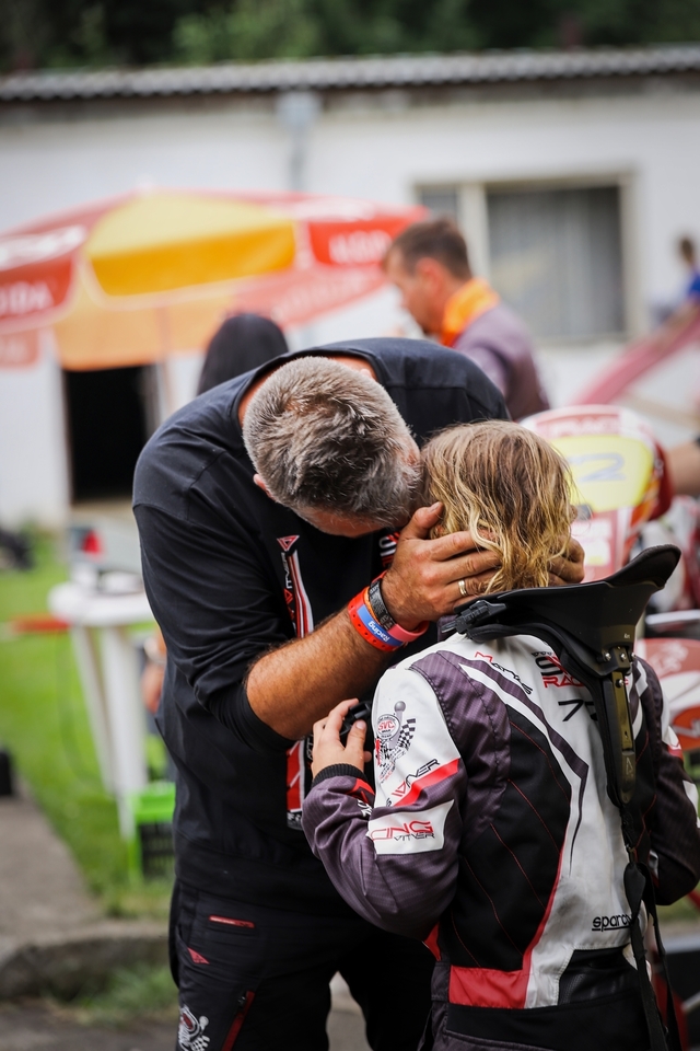 Při obědové pauze mezi druhou závodní a superfinále přišel Matyas nešťastný s infem, že byl zrušen mokrý závod. J Podpořili jsme ho, že jede dobře a ať je v pohodě a do superfinále jsme dík prozatímním hezkým jízdám šli namotivovaní. Start mohl být lepší, ale taky horší že… J Ne, nemůžeme říct ani ň…na tyhle závody se už dá opravdu koukat. Dá se říci, že většinu jízdy bojoval z 11 na 7 místě, což mu bylo osudové. Při pokusu poposunout se na 6 místo využil třetí soupeř situaci boje dvou závodníků před ním a vyšlo mu to….hold jak se říká: nedáš, dostaneš…místo posunu na 6 jsme se dostali na 8, ovšem krásné místo a na tom jsme také dojeli do cíle. Nedovedete si představit ten úžasný pocit, když vám to mladě přijede po jízdě takhle spokojené, nadšené, plné adrenalinu s vědomím, že dal jezdce, kteří jezdí i třeba již 5 let.