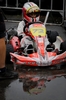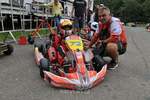 Byl to 5 nej čas této jízdy, kdy nám na první chybělo 0.344. No krásně nás zas namlsal. J Bohužel pro nás se 2 závodní jízda jela již pouze na oslizlu, takže to nehorázně klouzalo. I tak super, bojovalo se, hodinařilo se třeba i 5x za jízdu. Po startu se již v první šikaně objevil Matyas z 11 místa na 6 a ještě v prvním kole se dostal na neuvěřitelné 3 místo avšak jak rychle se tam dostal, tak rychle propadl, brzda byla silnější, motokára zahodinařila a Maty skončil na obrubáku ze kterého nemohl sám vyjet, vypuštěn byl traťáky až do bezpečné trati a to až na konec závodního roštu na 21 místo, za ním jeli již pouze 2 motokáry. Ale tyto hodiny byly první a poslední. Z toho malého kluka se stal bojovník a předjížděl a předjížděl…probojoval se přes 10 motokár a finišovou vlajku projížděl na svém osudovém 11 místě.