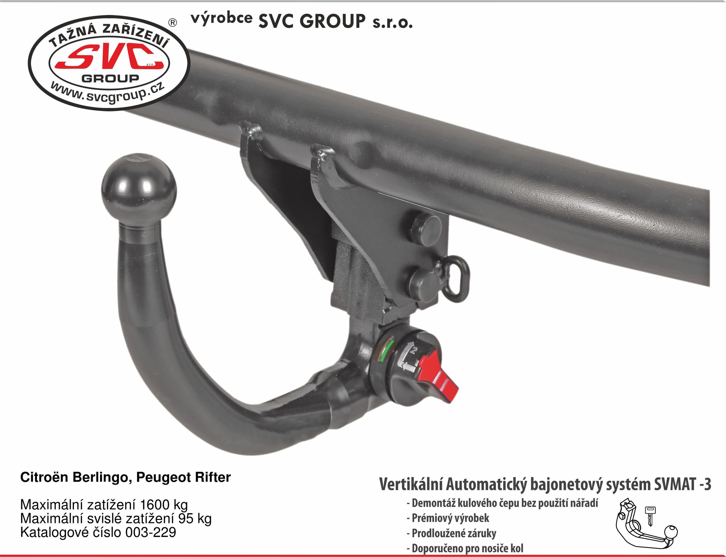 Bajonet Automat SVMAT-3 vertikální, pro demontáž kulového čepu z tažného zařízení bez použití nářadí.