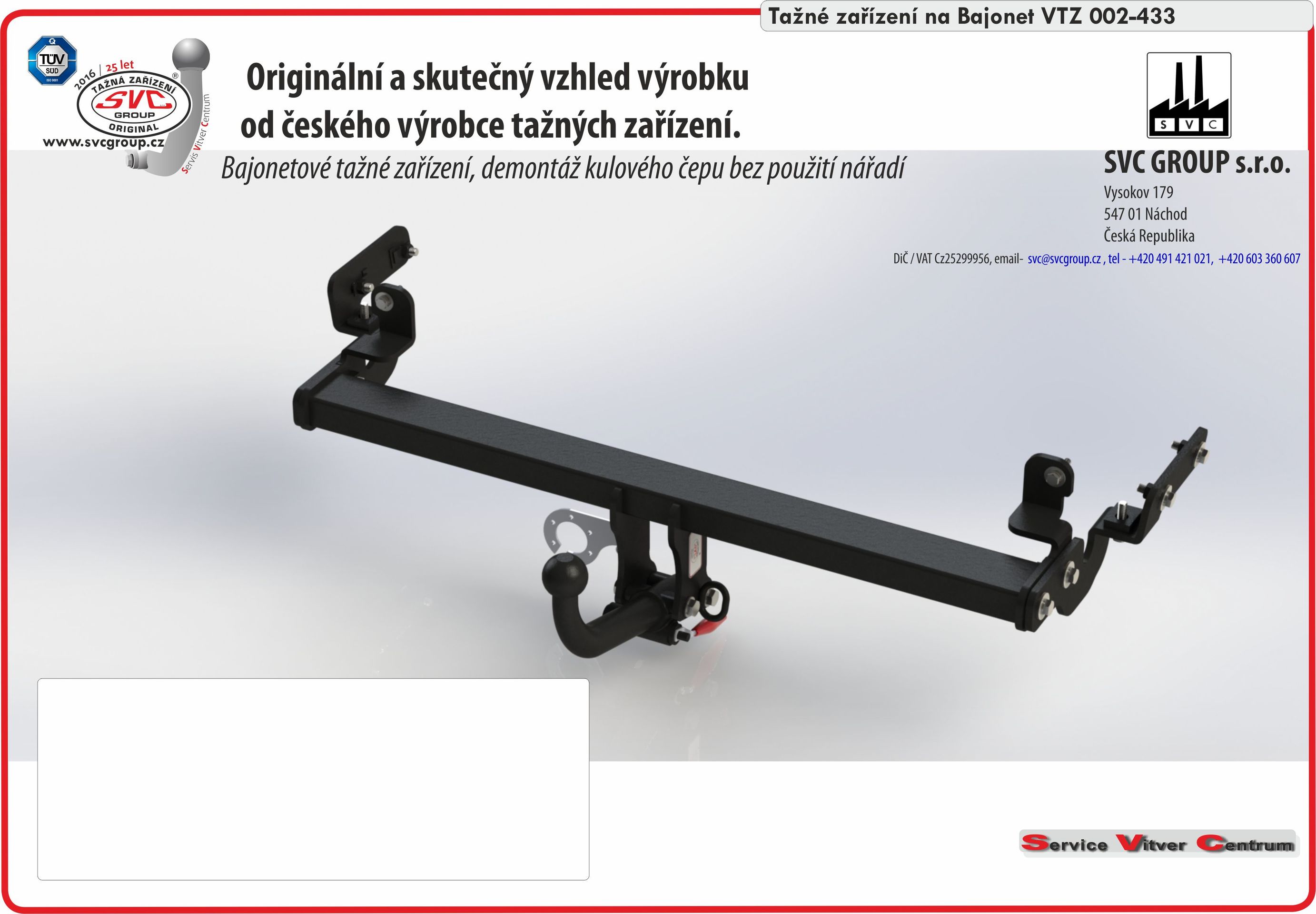 Originální SVC výrobek je vyráběn certifikovaným Českým výrobcem SVC GROUP s.r.o. dle norem ČSN ISO 9001:2016, EHK 55R a mnoha dalších, s více jak 29-letou tradicí na trhu, včetně expresních dodávek a servisu na výrobky.
