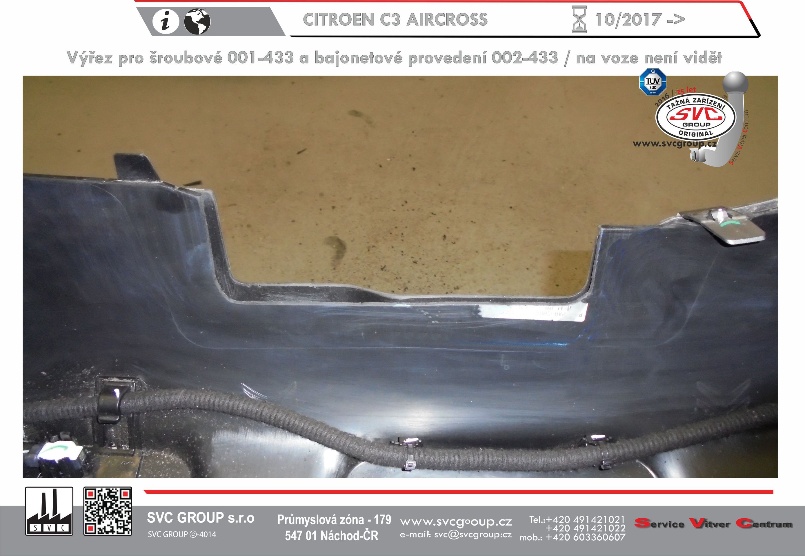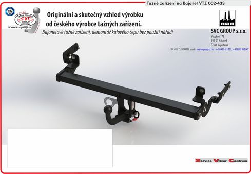 Výrobek je vyráběný dle požadavku vozu a Homologovaný pro prodej a provoz ve všech státech EU dle příslušných norem EHK-55R, podle zastaralé normy e94/20 zrušené již v roce 2016, která nesplňuje, dlouhodobě podmínky pro provoz nevyrábíme. Chráněný vzor SVC - bajonet SVMAT-2 je možné zaměnit za dvou šroubové provedení SVC, bez výměny tažného zařízení.