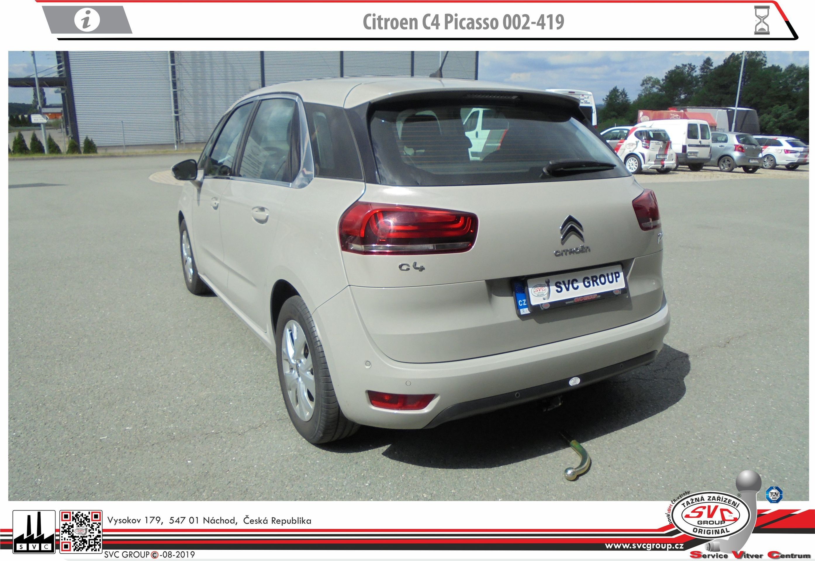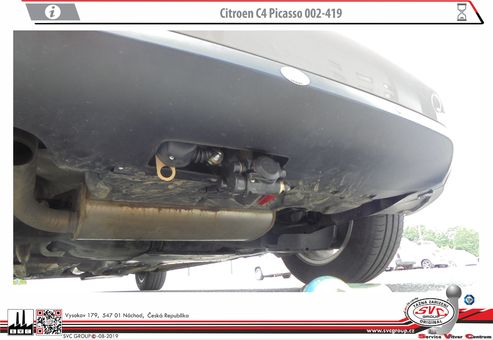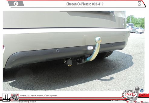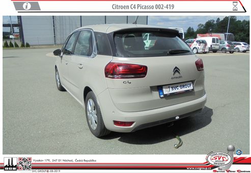 Tažná zařízení demontovatelné na bajonet pro Citroën C4 Spacetourer + Grand C4 Spacetourer. Určené i pro couvací radary  Možné taky pro  vozidla s Hybridním pohonem. pokud to povoluje výrobce vozu.  Zdroj informací svc©group.eu  Český výrobce s více jak 40 let na trhu